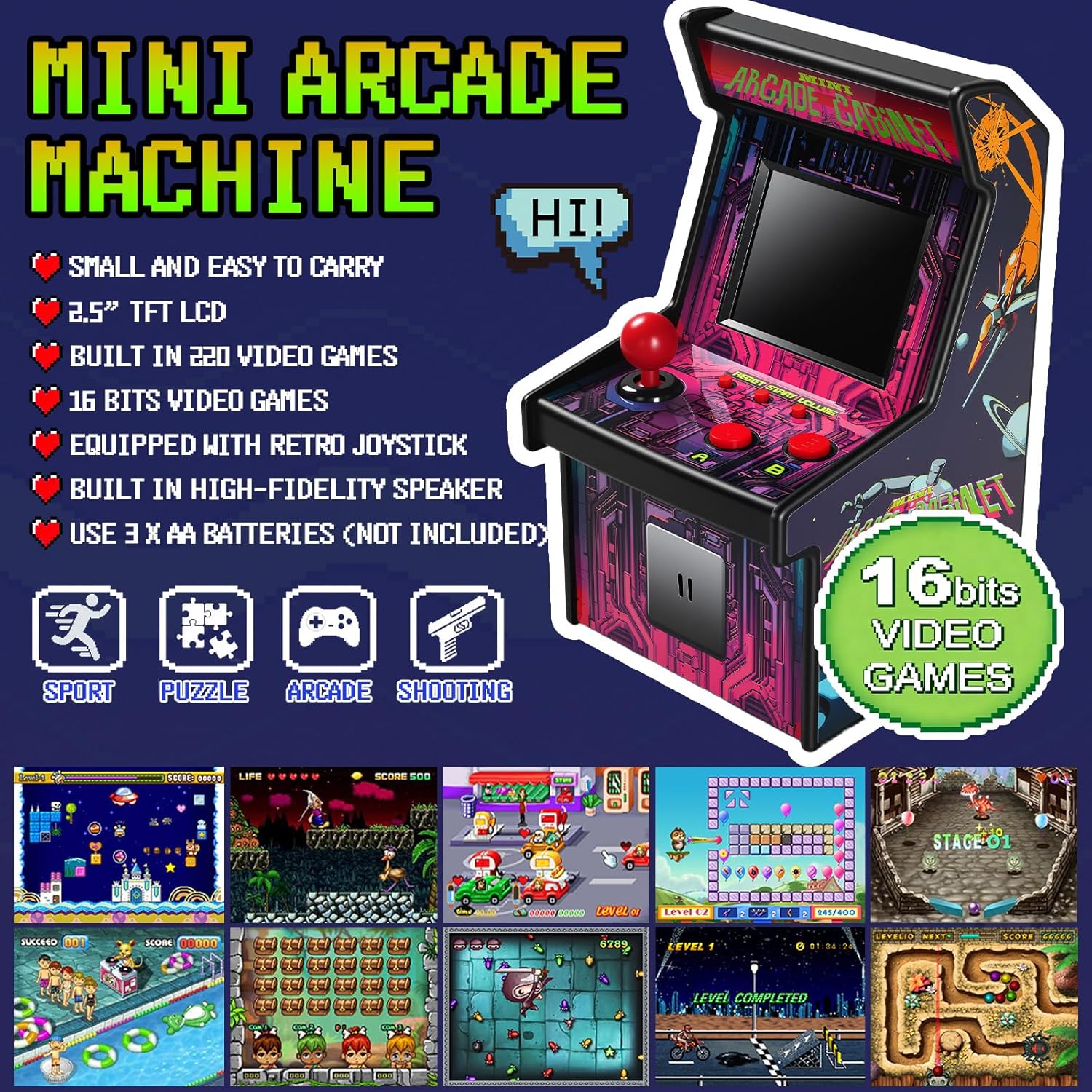 16 Bit Handheld Retro Games Console for Kids Adults, 8-Way Joystick,2.5” Large Screen Preloaded 220 HD Classic Retro Video Games,,Gift for Kids 4-12