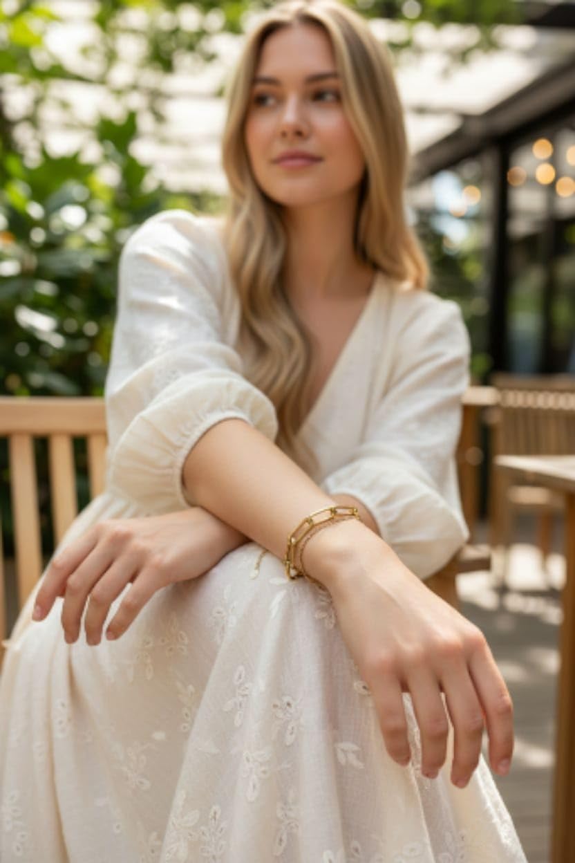Daily wear from office to errands. Beach, pool & vacations no tarnish, no worries. Date nights & parties instant shine. Layered stacks with your watch/bracelets. Gifting birthdays, anniversaries, bridesmaids.