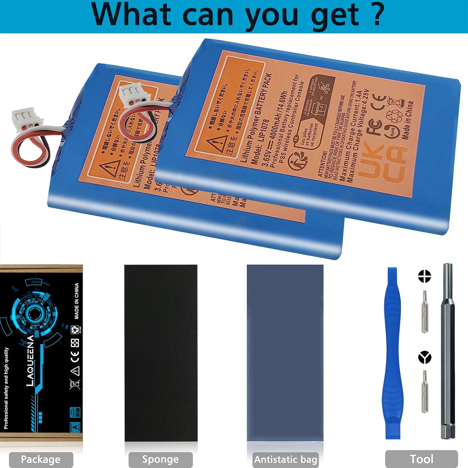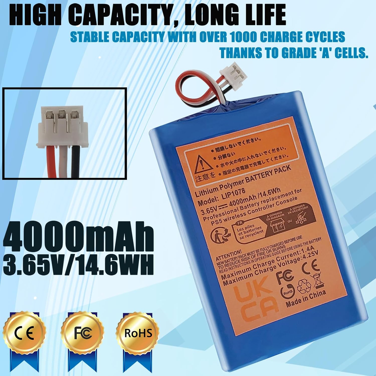 2-Pack LIP1078-2 4000mAh Battery Compatible with Sony PS5 PlayStation 5 Dual Sense Controller CFI-ZCT1W Gamepad 14.6WH