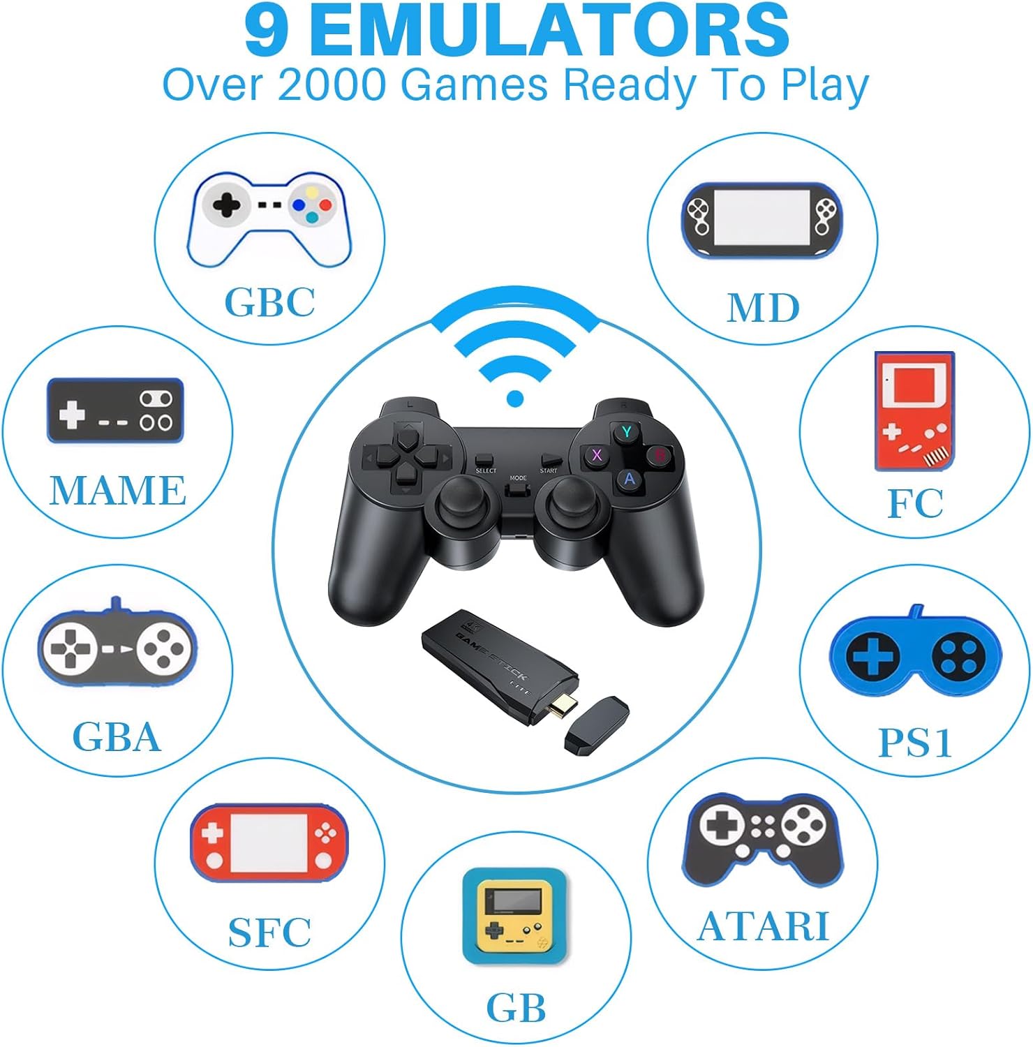 【High-Definition&Plug-and-Play Setup】Experience crystal-clear graphics with 1080p HDMI output,turning your TV into an instant arcade with plug and play video games for tv. The included 64GB TF card ensures ample storage for all your games, while the wireless design eliminates clutter. It’s a user-friendly game stick-style device that requires no downloads or complicated installations—just connect and play!