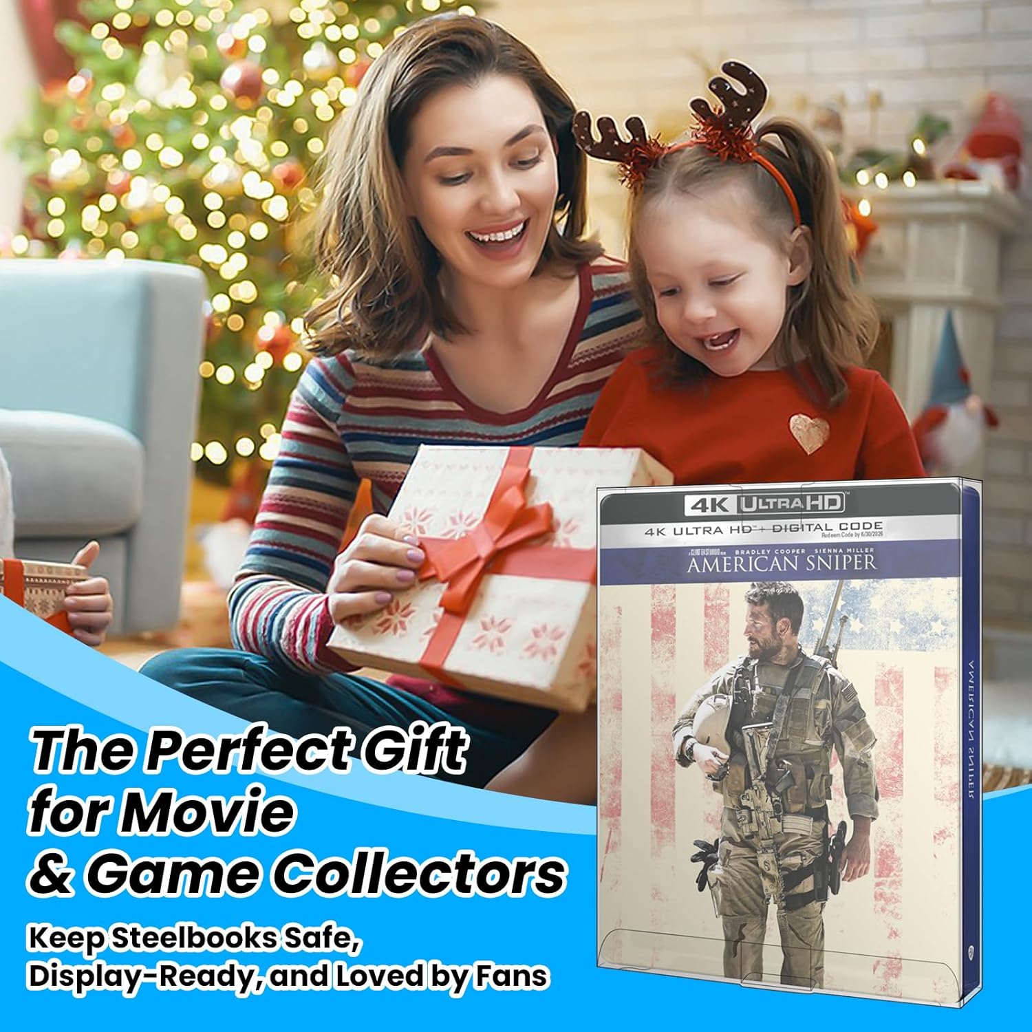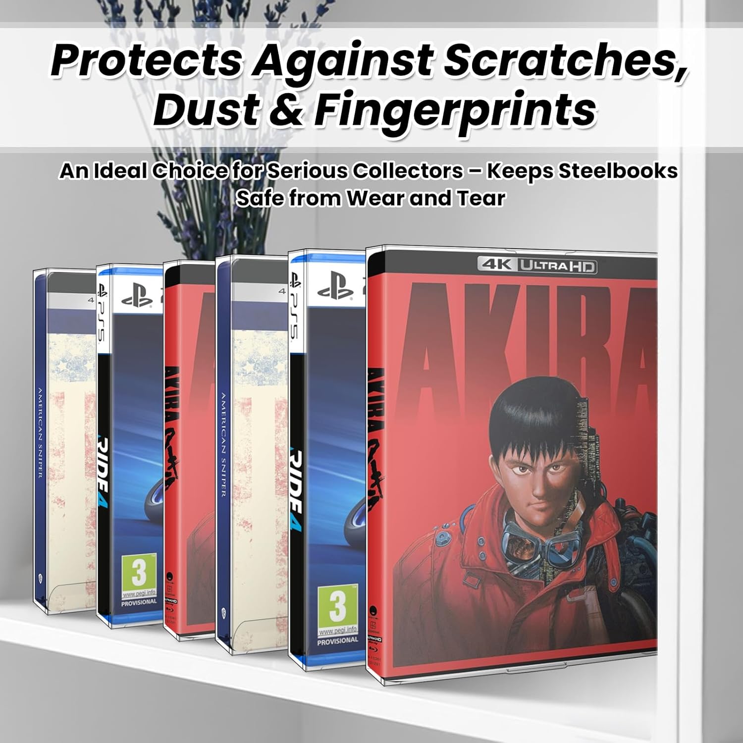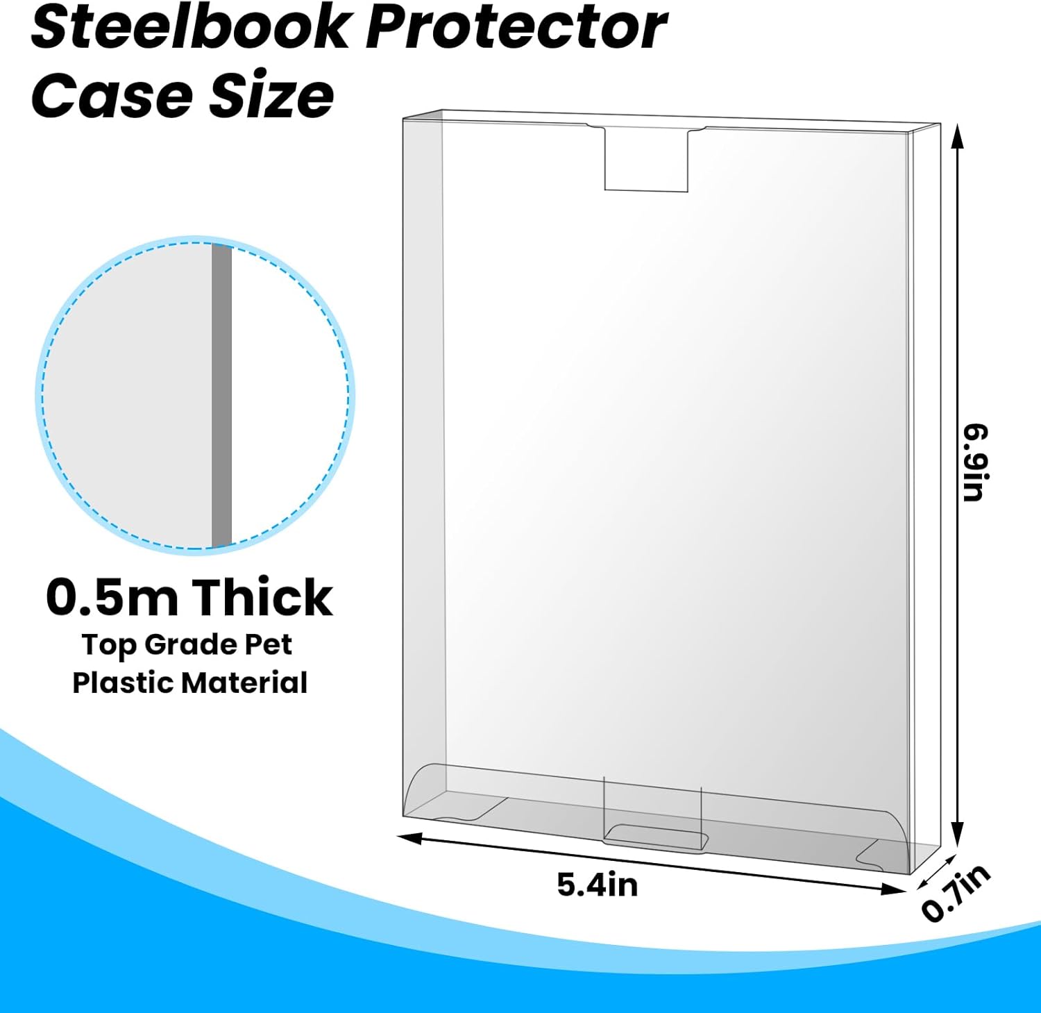 【Heavy-Duty Steelbook Protection 】Made from thick, crystal-clear PET plastic, these steelbook protector cases guard Blu-Ray, 4K UHD, and gaming steelbooks against scratches, dust, fingerprints, and shelf wear—perfect for serious collectors