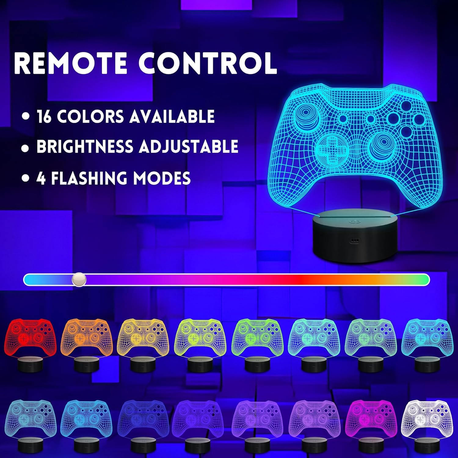 3D Gamepad Illusion Lamp, LED Hologram Game Night Light with Remote Control 16 Color-Changing Timer, Creative Gift on Chrismas Day Birthday for Friend Teenage Boy Men