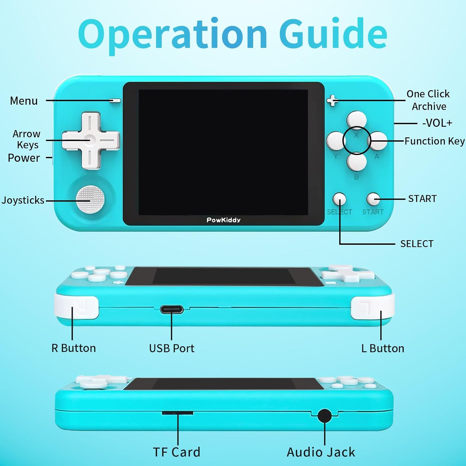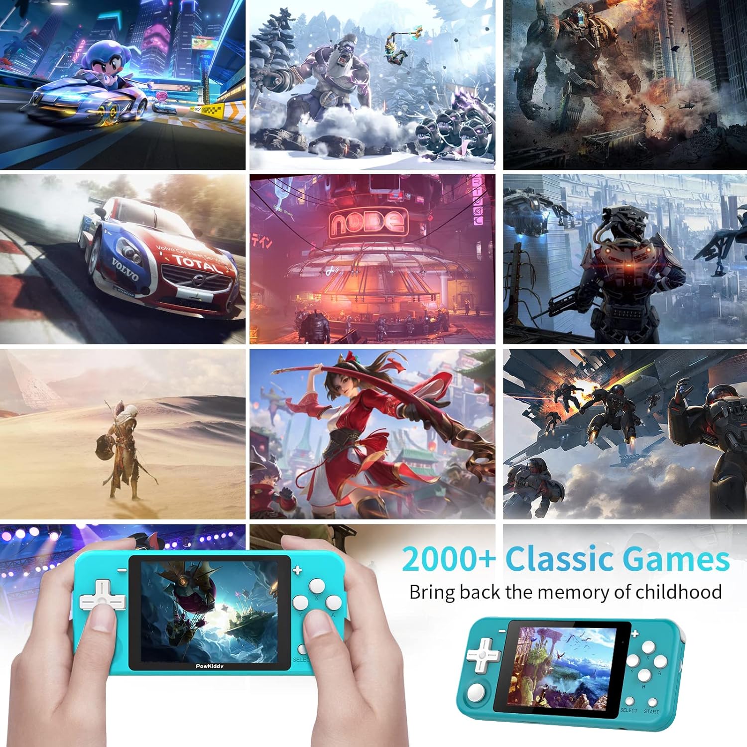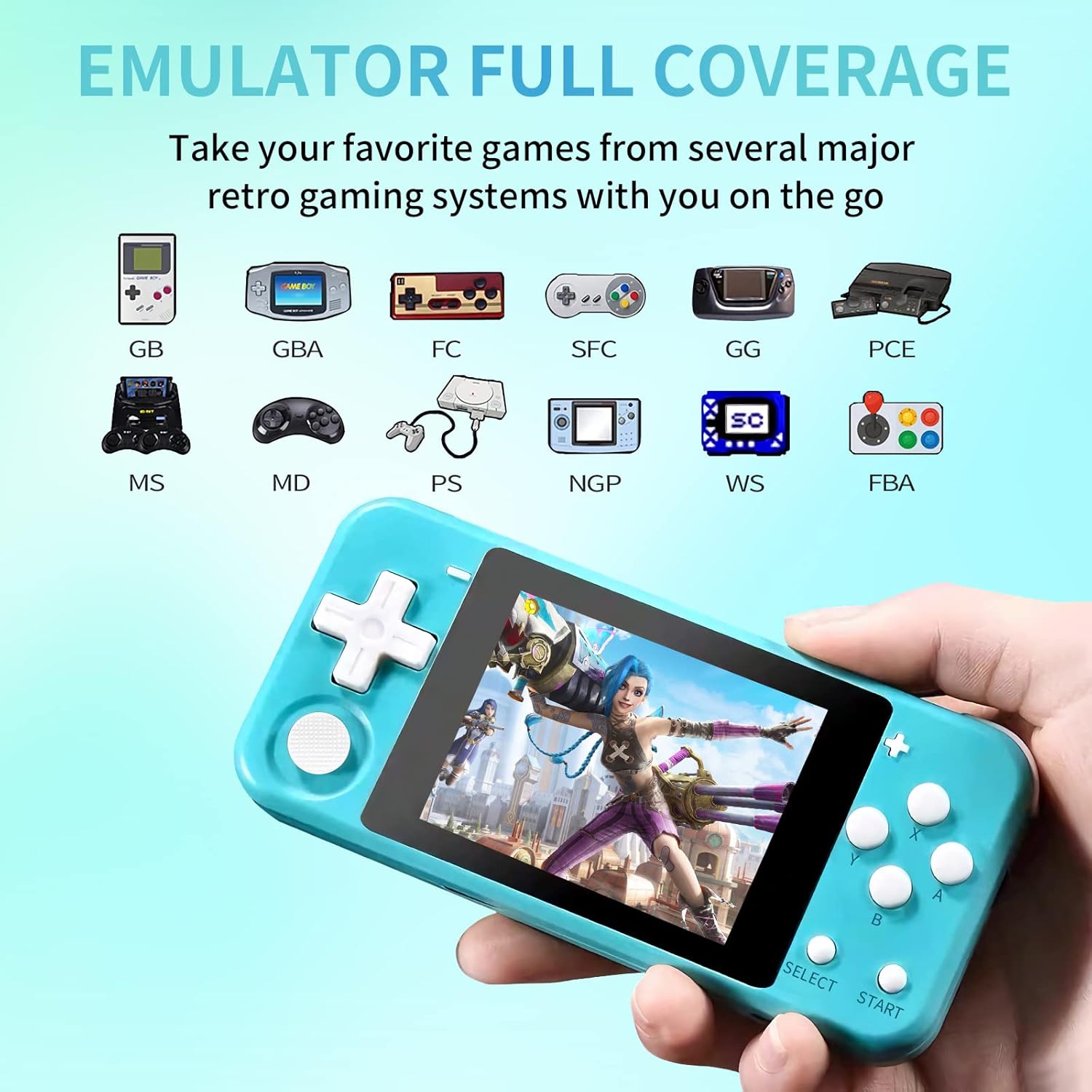 5-inch Q90 Portable Game Console, Open-Source Linux, Vibration Motor, 1,100 Games, Compatible with Multiple emulators ,64GB (Blue)