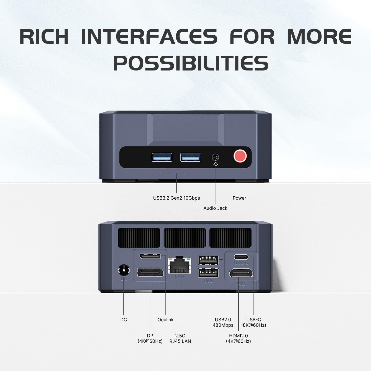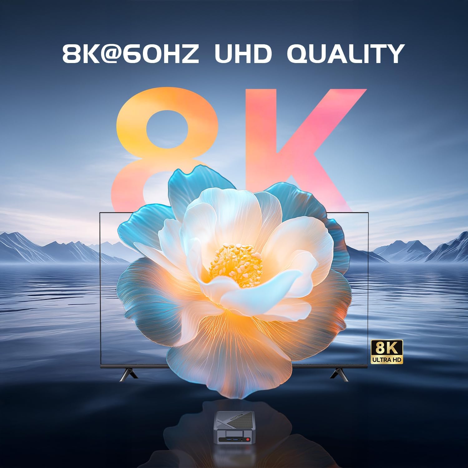 【8K@60Hz USB4 / TRIPLE DISPLAY】: This mini desktop features Radeon 780M Graphics(up to 2700MHz). It includes HDMI 2.0(4K@60Hz)×1, USB4 Type C (8K@60Hz)×1, DP (4K@60Hz)×1,which allows you to connect up to three monitors for multitasking and having awesome high-definition view