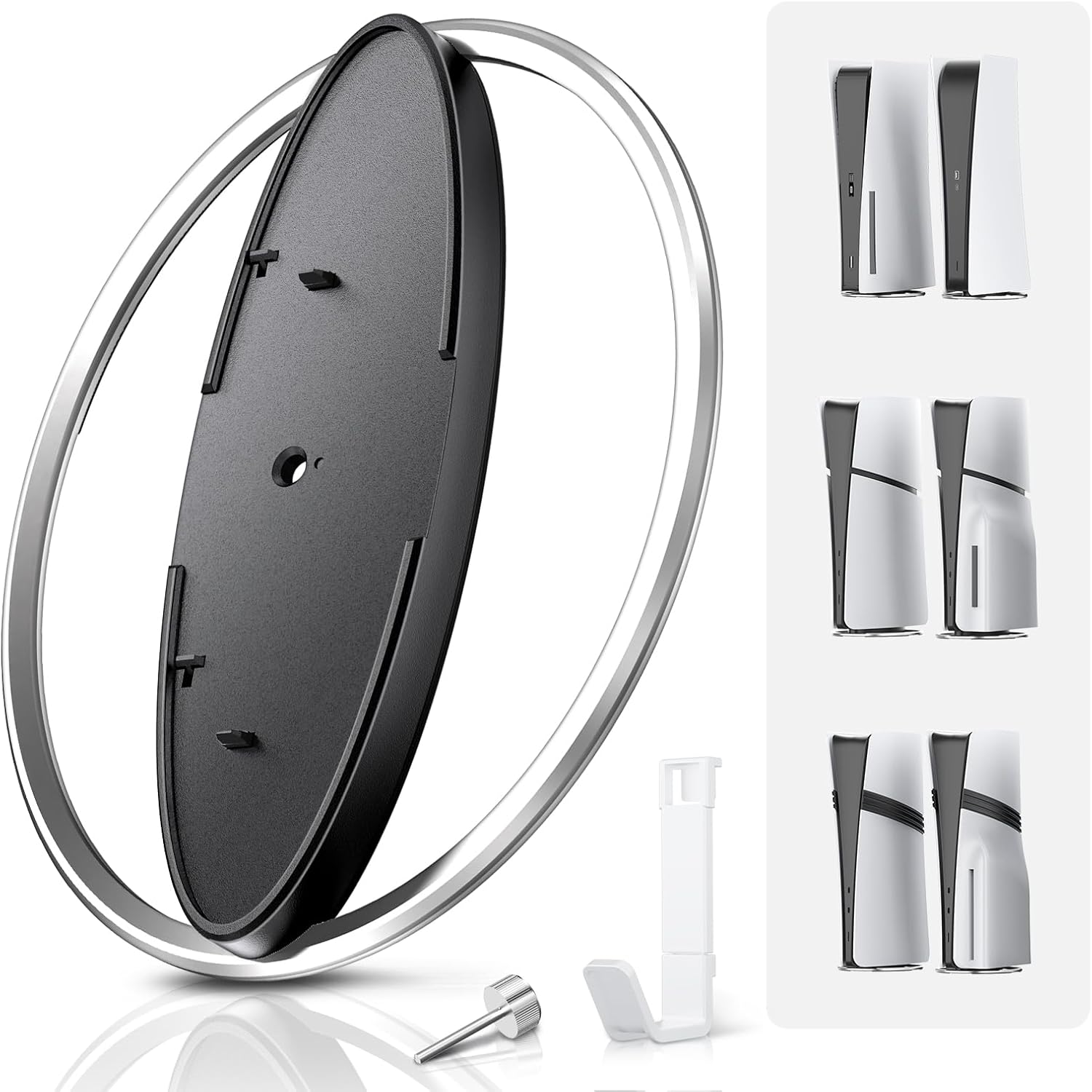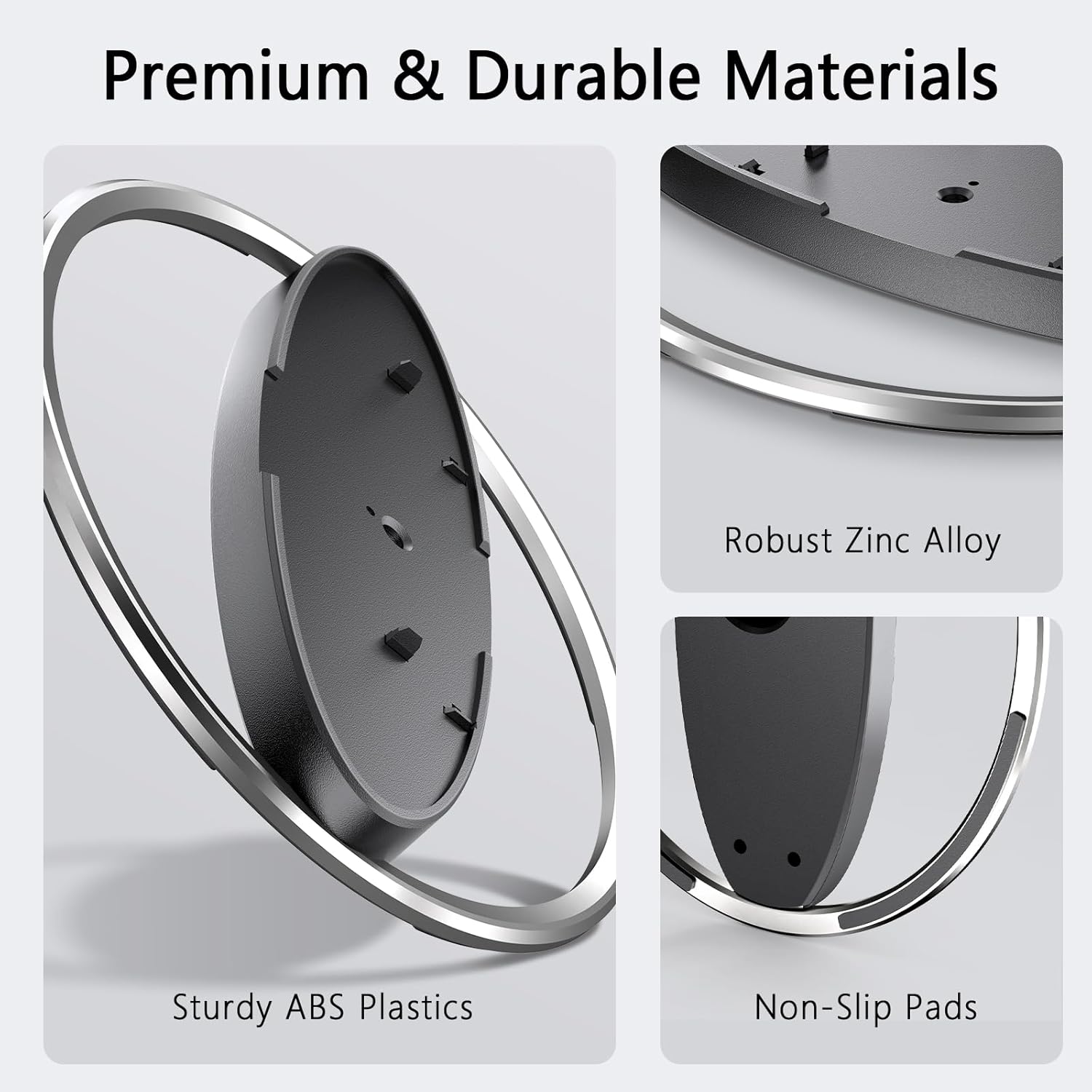 【High Quality Materials】 The ring is made of high-quality robust zinc alloy stainless steel ring and non-slip pads, which is hard, wear-resistant, smooth and beautiful surface.The center base is made of high hardness ABS composite resin. Sturdy and heavy feel, minimizing the risk of accidental falls, rollover or damage.Its sturdy construction ensures that your console stays securely in place, even during intense gaming moments or vibrations.