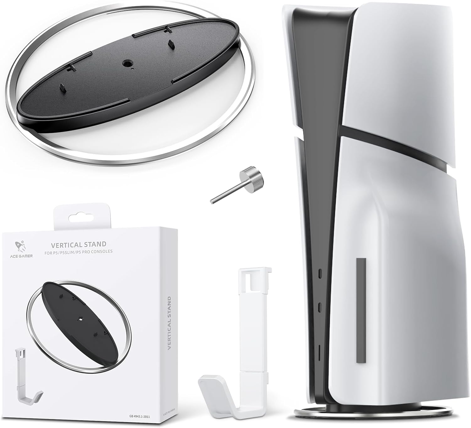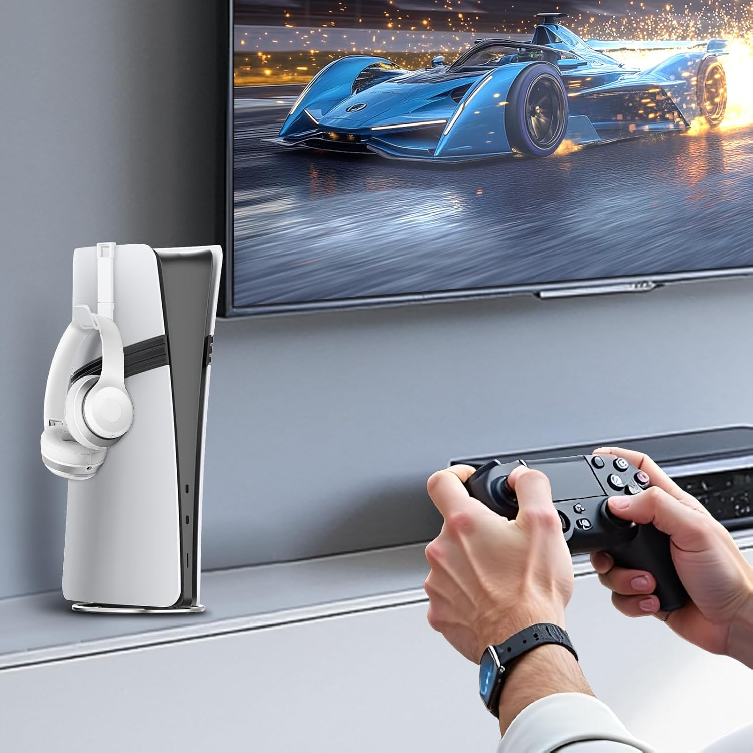 【For PS5 PRO/ PS5/ PS5 Slim Console】The vertical stand is specially designed for PS5/ PS5 PRO/ PS5 Slim. Come with a white headset holder to keep your gaming setup organized.