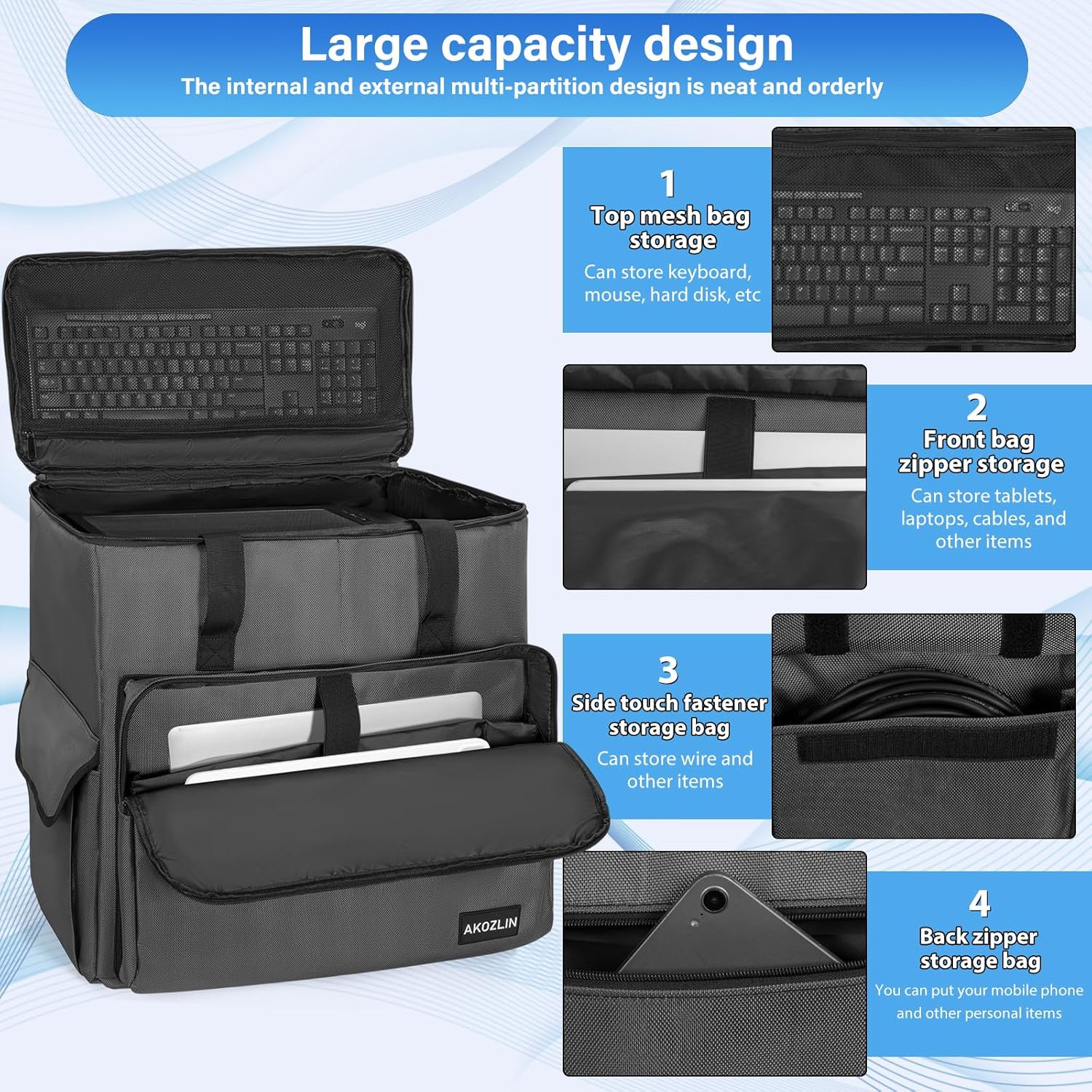 AKOZLIN Desktop Gaming Computer Tower PC Chassis Carrying Case Travel Storage Bag for Keyboard Mouse Accessories Grey