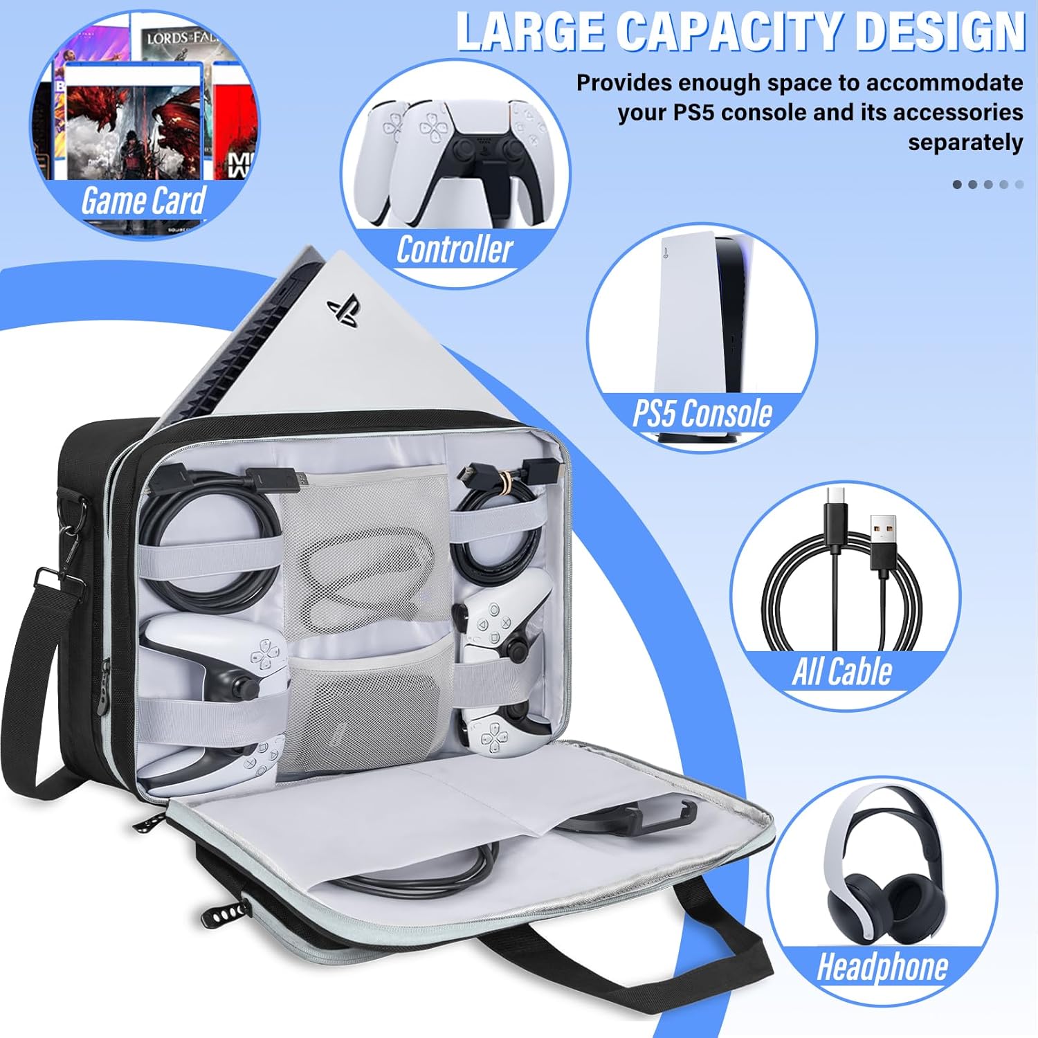 AKOZLIN Full Padded Carrying Travel Bag Compatible with PS5/PS5 Pro Console PlayStation 5 Monitor,Headset,Game,Charger & Accessories Storage Case [Video Game]