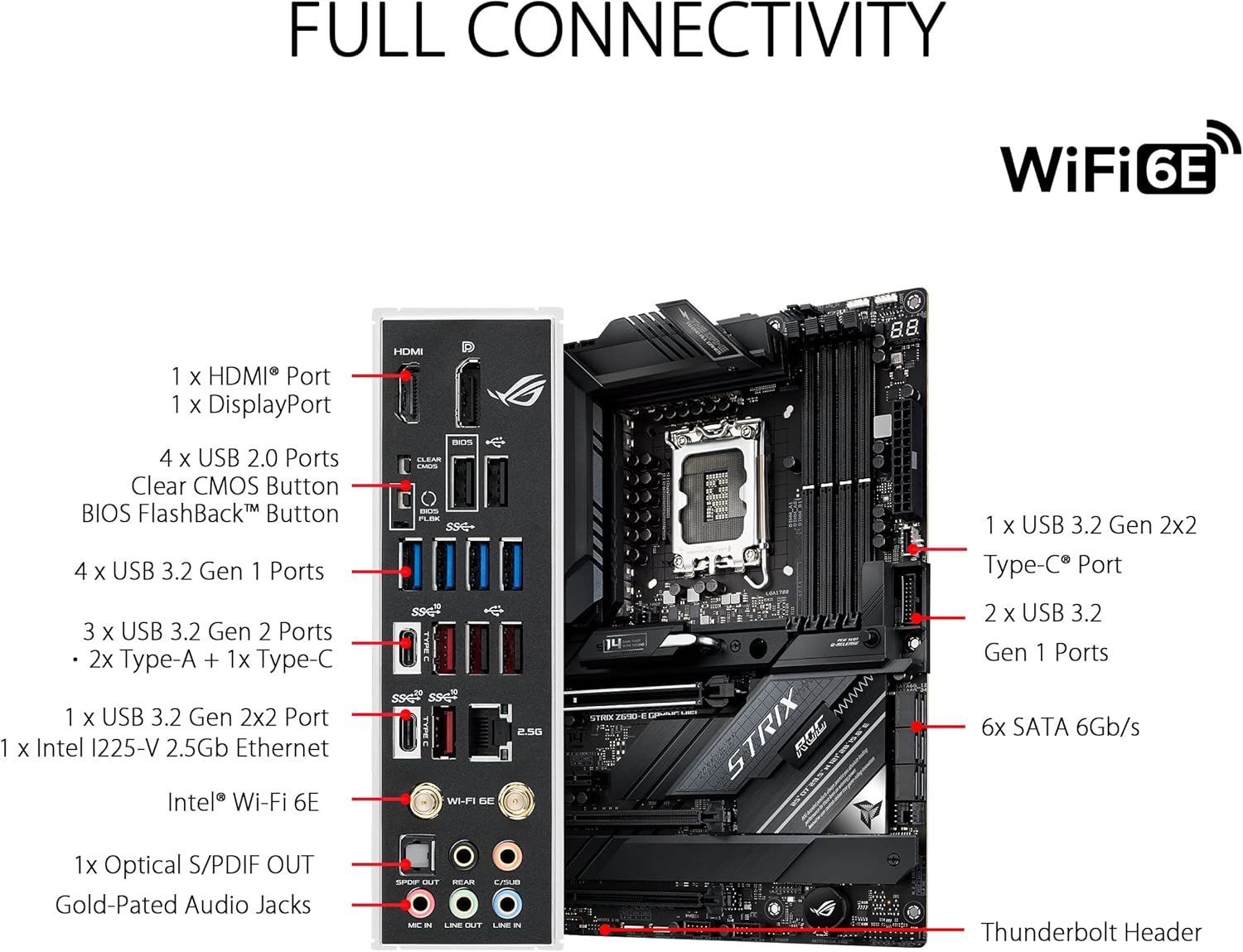 High-performance Gaming Networking: On-board WiFi 6E and Intel 2.5 Gb Ethernet with ASUS LANGuard
