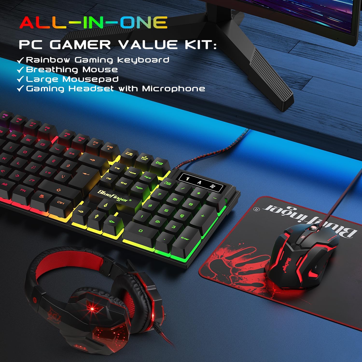 【All IN 1 Gaming Bundle】: Includes Bluefinger RGB Backlit Gaming Keyboard and Mouse, red gaming headset, mouse pad. ALL-IN-ONE PC GAMER VALUE KIT, Ideal for beginners, casual gamers, or anyone upgrading their desktop setup.