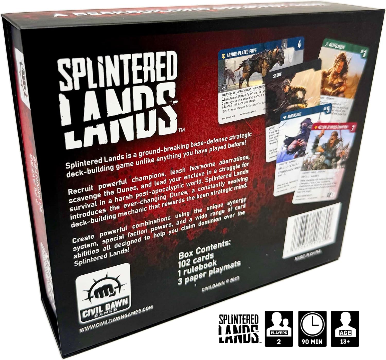 Recruit powerful champions, leash fearsome aberrations, scavenge the Dunes, and lead your enclave in a struggle for survival in a harsh post-apocalyptic world. Splintered Lands introduces the ever-changing Dunes, a constantly evolving deckbuilding mechanic that rewards the keen strategic mind.