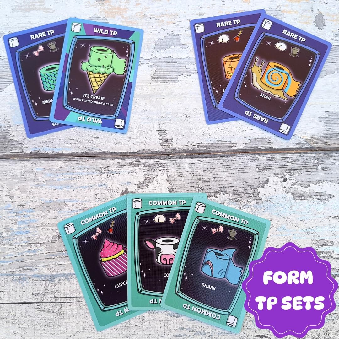 MOST TP WINS – Become the best [Blank] and claim victory by having the most sets of cute toilet paper when the last spaceship part is drawn from the deck.