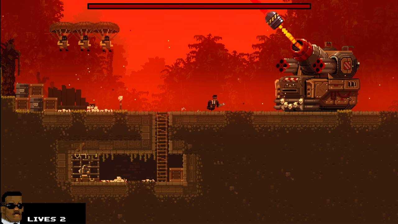 When evil threatens the world, the world calls on Broforce – an under-funded, over-powered paramilitary organization dealing exclusively in excessive force. Brace your loins with up to four players to run ‘n’ gun as dozens of different bros and eliminate the opposing terrorist forces that threaten our way of life. Unleash scores of unique weapons and set off incredible chain reactions of fire, napalm, and limbs in the name of freedom. The Broforce: Deliver your own brand of shock and awe with dozens of bros each with their own unique weaponry and special attacks designed to dispatch freedom across the world. Bro-Op & Deathmatch: Battle terrorism with up to four players in cooperative mode or sever ties with your bros and face each other in several bombastic competitive modes. Explosion Run: Join up with other bros to tackle these unique time attack levels under the pressure of exploding terrains and mass chaos. Fully Destructible Everything: Destructible terrain opens up a slew of strategic options while the abundance of Exploding Red Barrels of Justice can literally level the playing field with one shot.