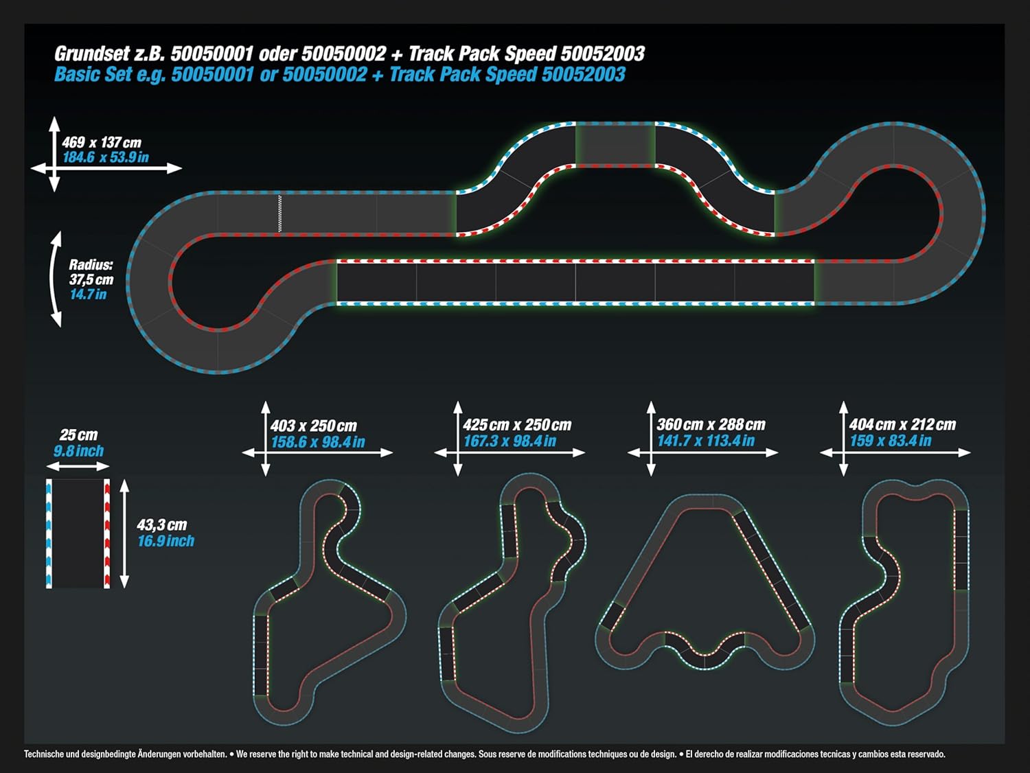 Expand your Carrera Hybrid racing track with the Carrera Track Pack 1! This set includes 10 additional track pieces, including 2 right curves, 2 left curves, and 6 straight sections, offering a total length of 13.68-ft. It’s ideal for creating even more exciting track layouts and enhancing the ultimate racing experience. Perfect for anyone looking to take their Carrera Hybrid racing track to the next level!