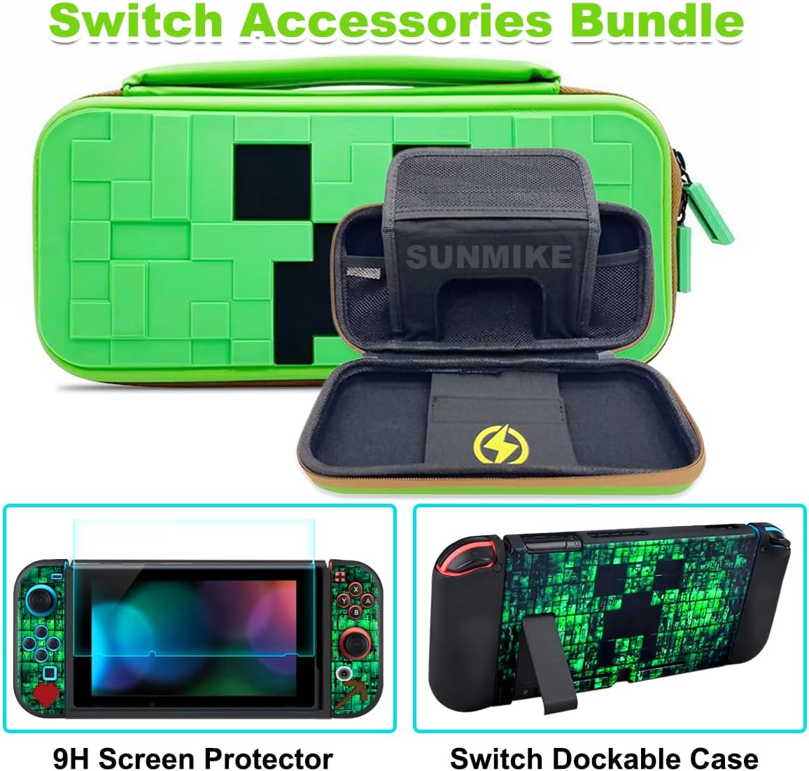 Essential Switch Accessories Bundle: Switch accessories kits includes Switch carrying case(for daily storage and travel), Switch dockable case, Switch screen protector, 4 pcs Switch thumb grips caps.