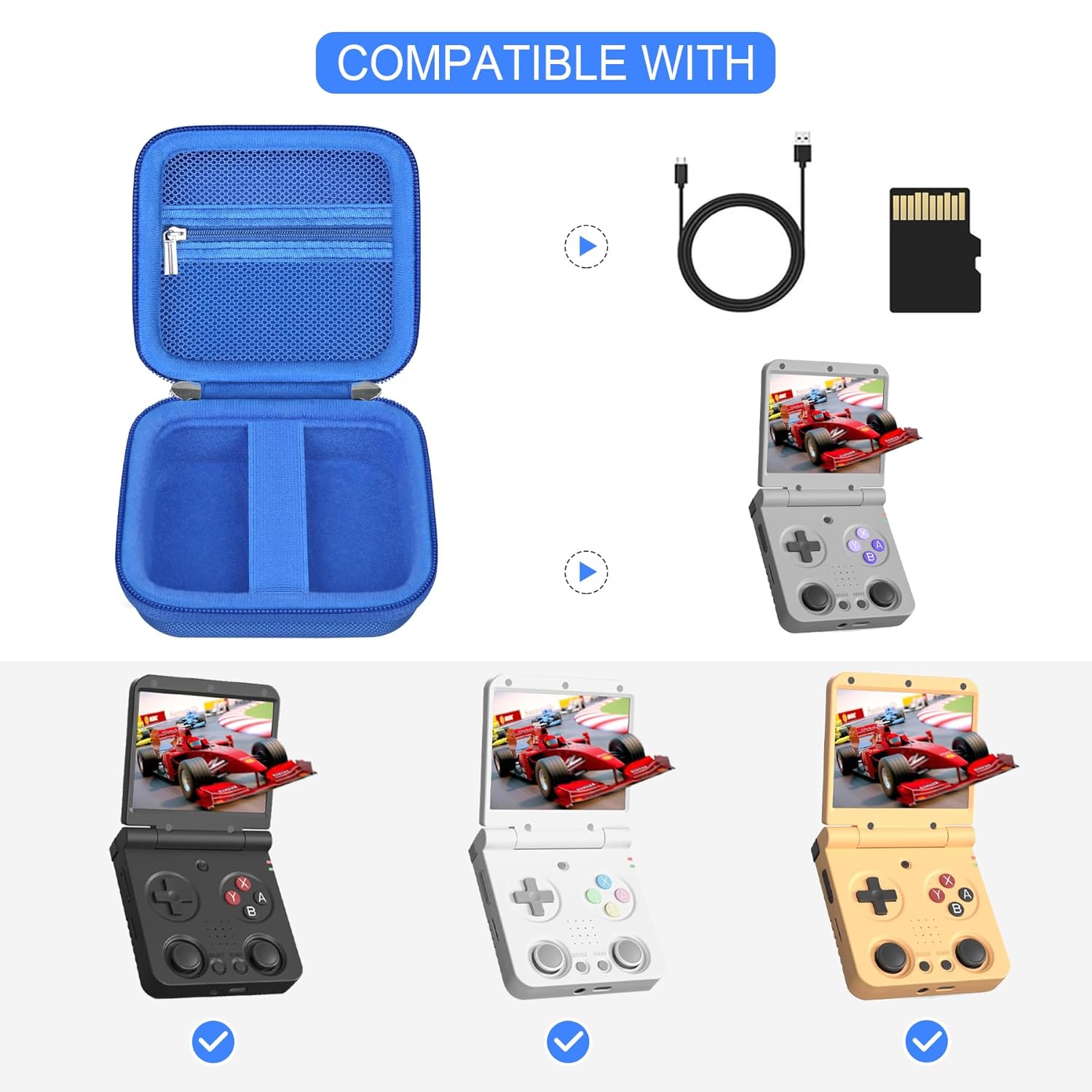 Carrying Case for RG34XXSP/RG35XXSP/Miyoo Flip V2 Retro Game Console, Portable Handheld Game Console Travel Storage Case with Mesh Bag for SD Card, USB Charging Cable, User Manual, Blue