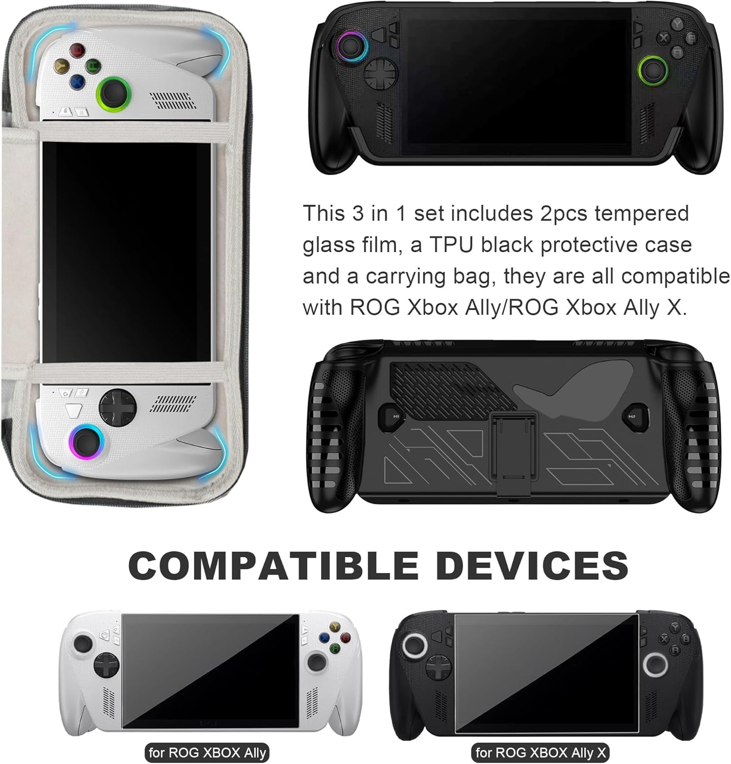 Carrying Case with Protective Cover and Screen Protector Compatible with Rog Xbox Ally X/Rog Xbox Ally 2025 Kaiplayhorizon 3 in 1 Accessories Set Hard Carry Box Protective Case 2 Pack Film Protector