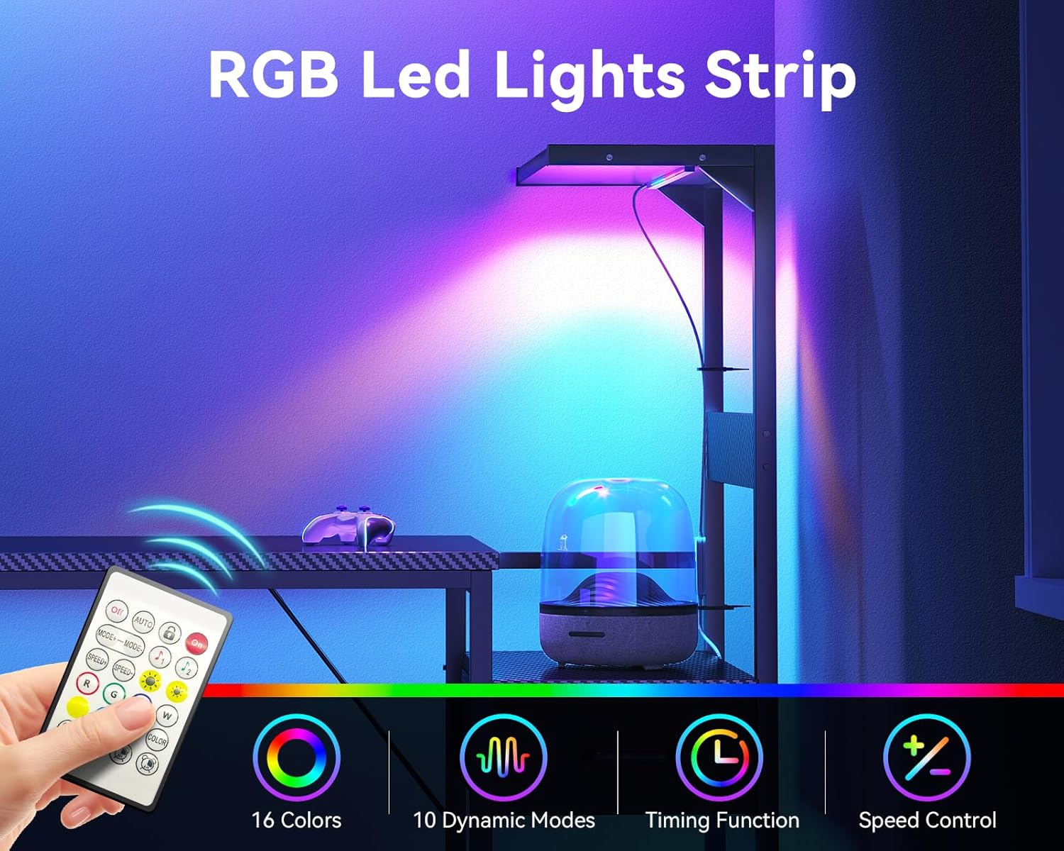 LED LIGHTING SYSTEM: Built-in RGB LED strip offers 16 colors and 10 dynamic modes with remote-controlled timing function and speed adjustment for customizable gaming atmosphere to enhance your gaming experience.