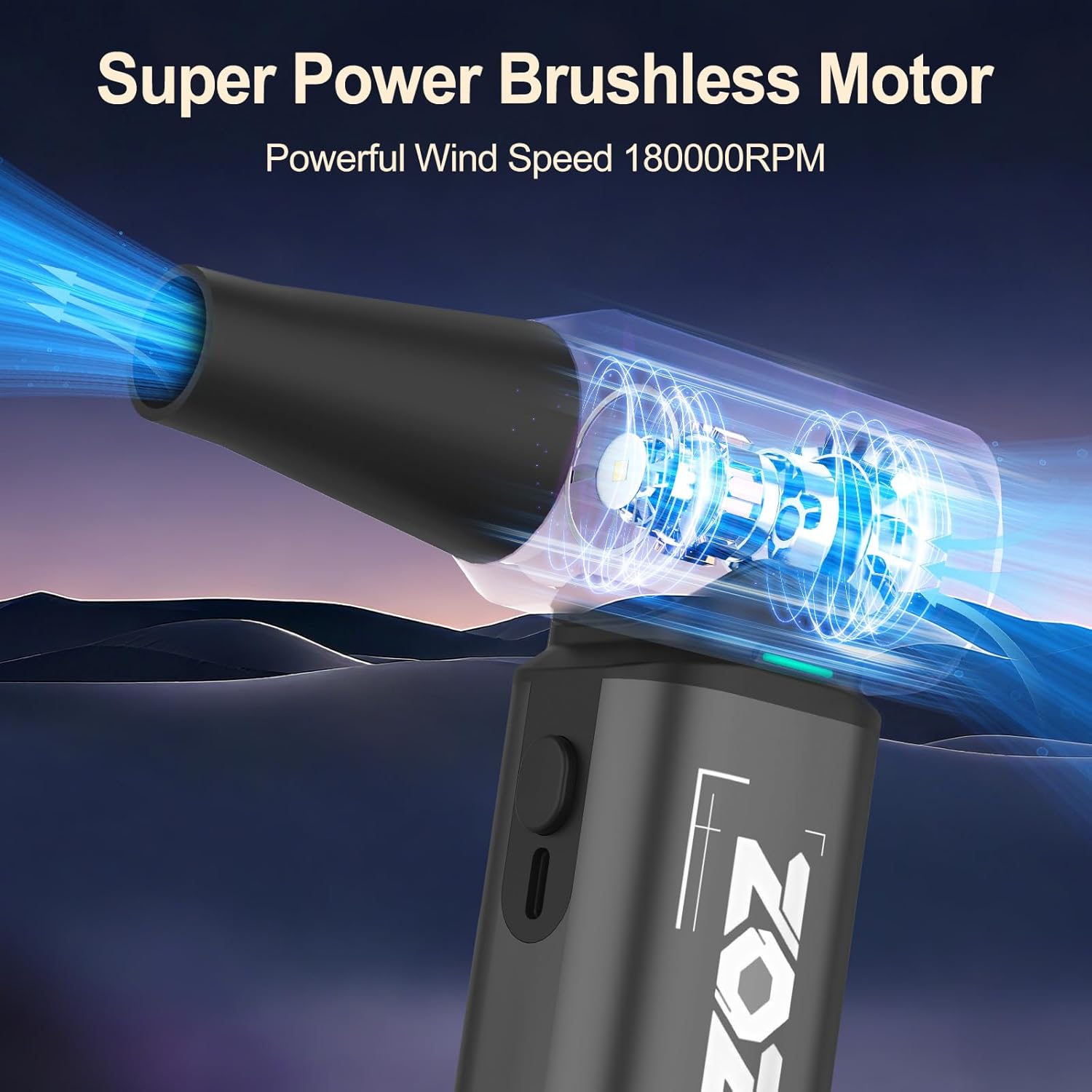 【Powerful Performance】The air duster collector can reach a speed of up to 180,000 RPM, efficiently removing dust and other impurities. It features a stepless speed regulation mode and can precisely customize the airflow according to different cleaning requirements.