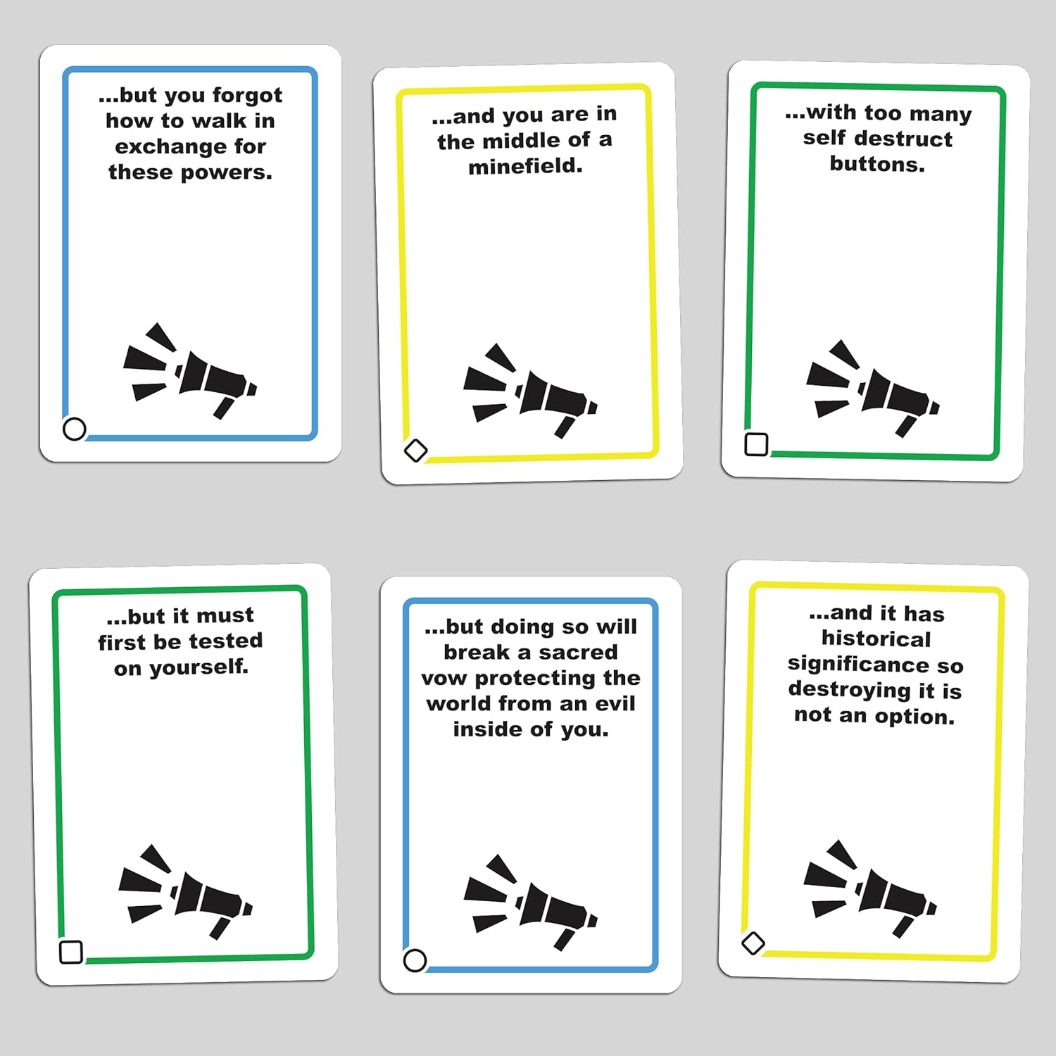 INCLUDED: 270 cards divided into Danger, Skill, Tool, and Plot Twist, including blank cards to create your own scenarios.