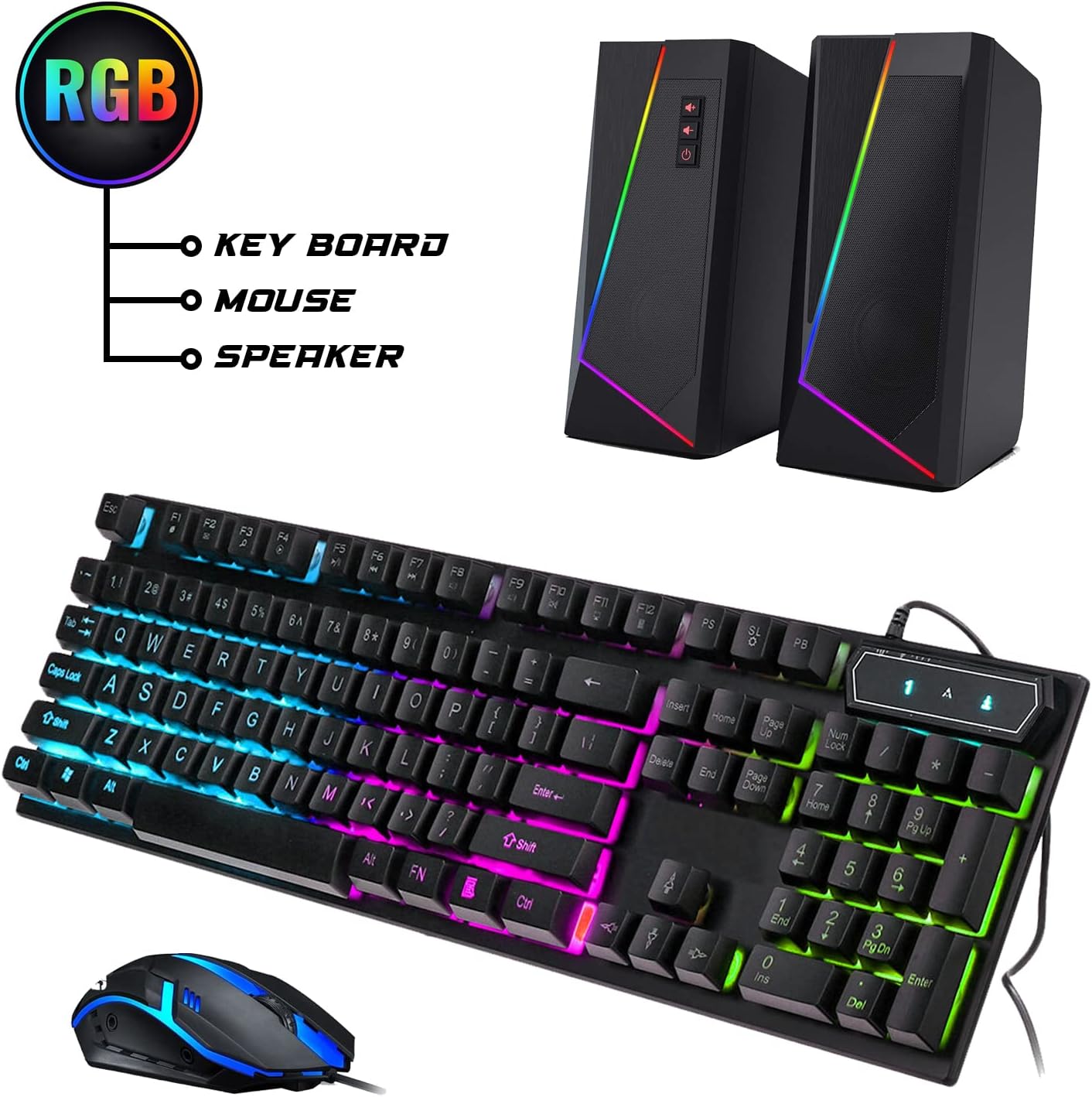 ⌨️ +🖱️ RGB KEYBOARD AND MOUSE | RGB SPEAKER: 3 LED Colors – Blue, red, green, Backlight LED Lights for use at night time, looks amazing. The keyboard mouse and speaker are responsive, reliable, and probably plastered in RGB lights. It’s important you pick the right one for your desktop.
