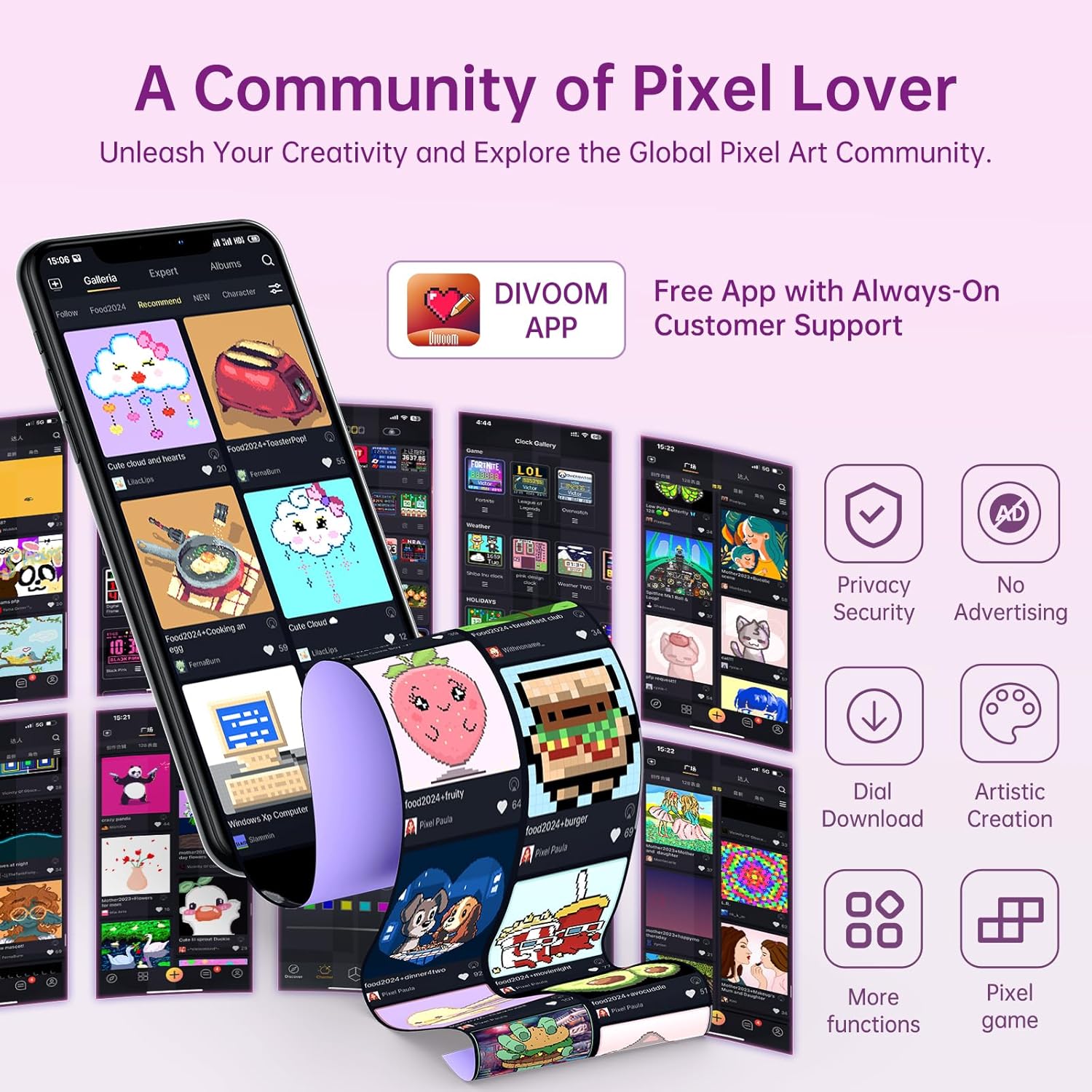 【Pixel Art Creation】 – Unleash your creativity with the Time Gate. Our extensive pixel art library, updated daily, lets you personalize your display with animated designs, messages, and more, reflecting your unique style and mood.