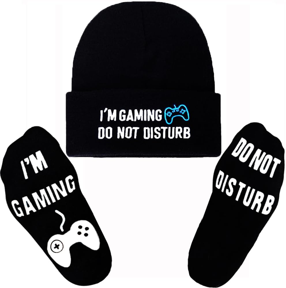 Do Not Disturb Gaming Socks Black Beanie Hat Father’s Day Gamer Gifts for Teens Boys Men Kids