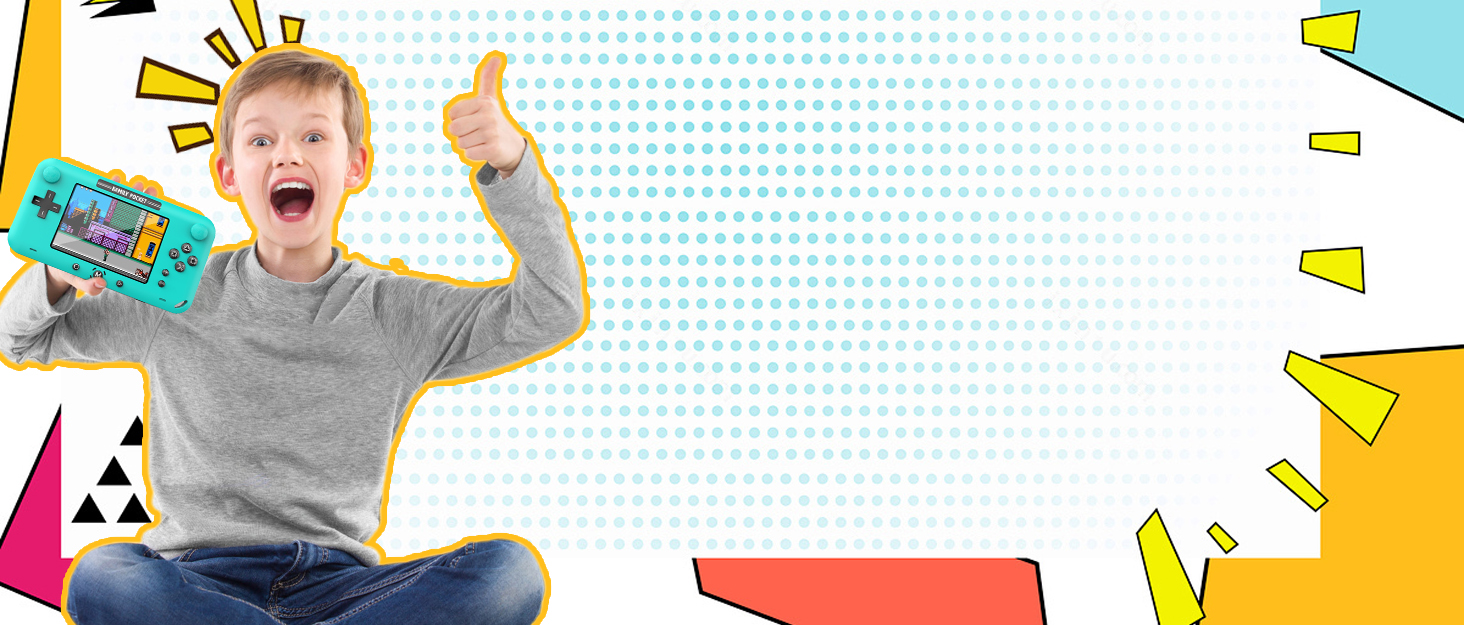 Kids’ handheld game console with 168 video games. Great for long trips, queues, party favors and birthday gift for kids.