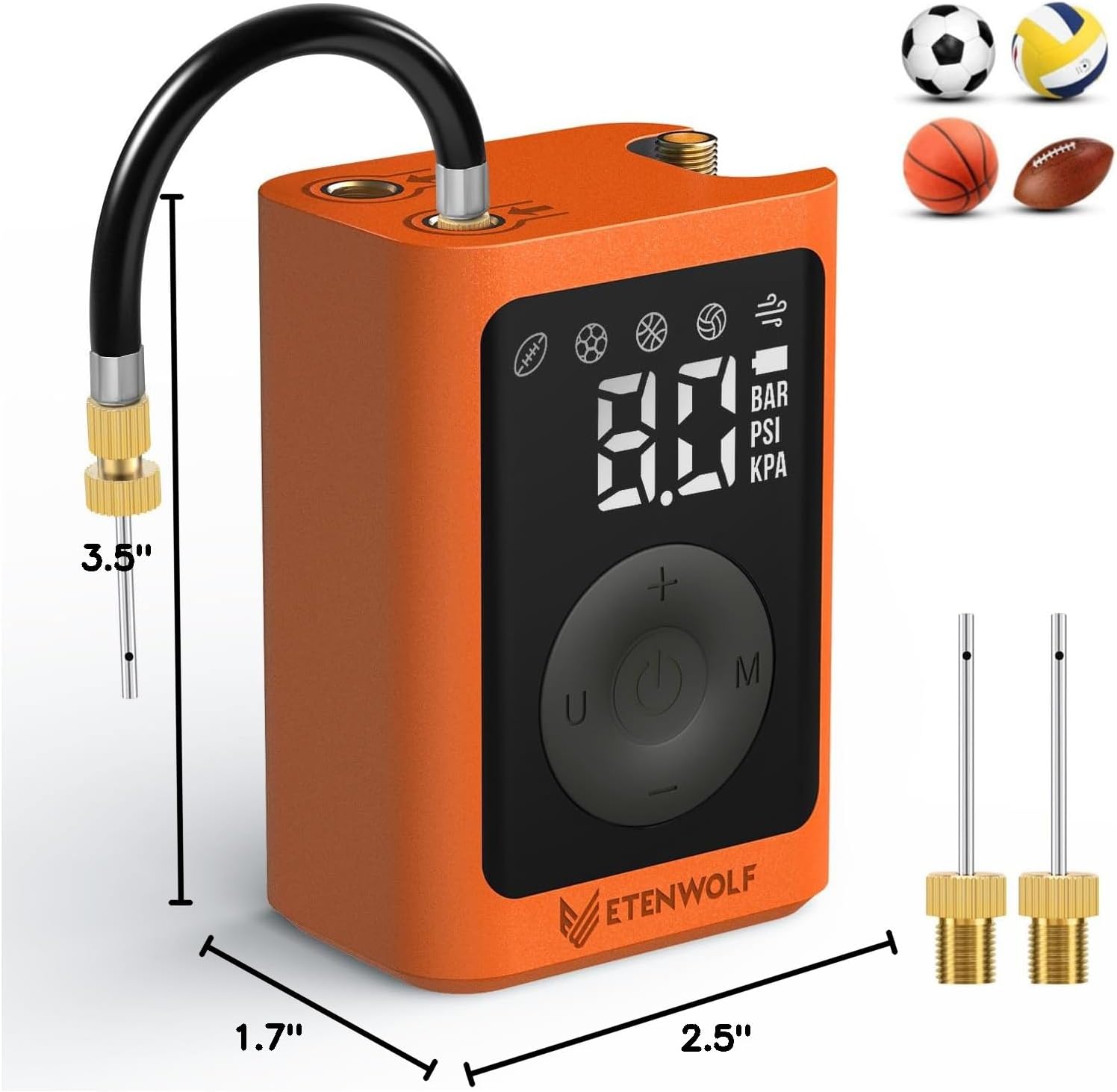 PRECISE ENOUGH: Equipped with a highly sensitive pressure sensor, the ETENWOLF ball air pump can detect current ball pressure and reach the exact target pressure you set( plus-minus 0.3 psi)