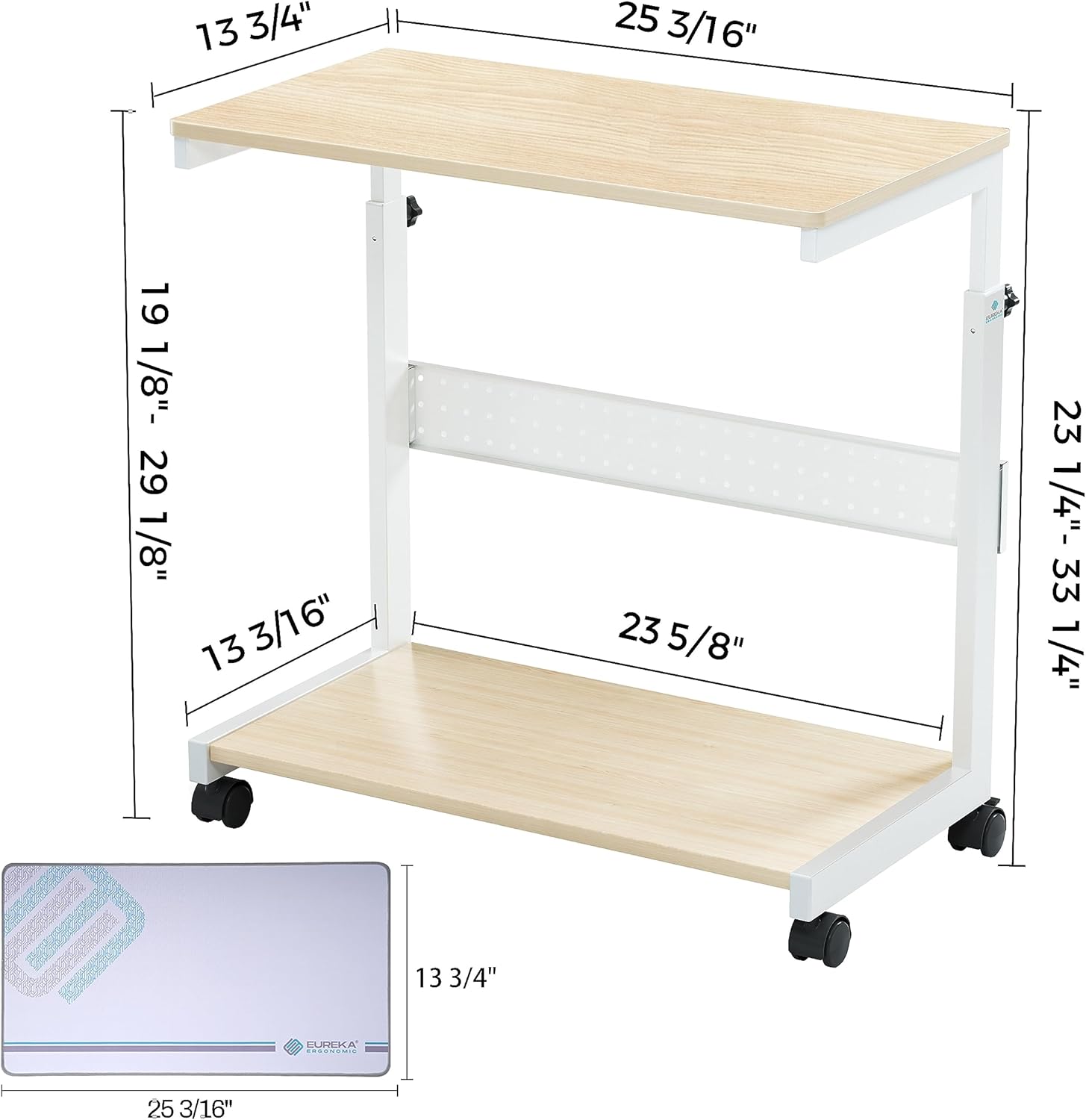 Multifuctional Design: Efficient 2-tier design. The bottom shelf stores the computer tower while the top shelf holds printers, smaller PC, mixer, plants, documents, and magazines. Pegboard on back organizes office supplies such as power strips, etc. Mousepad included, this CPU stand can be used for mouse operation & comfortable arm rest. Can also be used as mobile laptop stand or rolling computer desk that allows you to settle into any place for work like bed and sofa, ready to set up