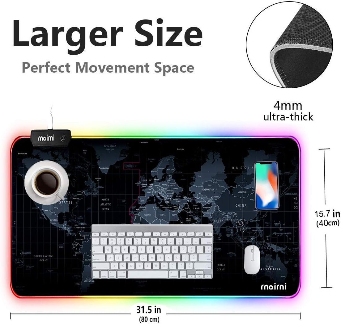 Extended RGB Gaming Mouse Pad, Extra Large Gaming Mouse Mat for Gamer, Waterproof Office Desktop Mat with 10 Lighting Mode, for PC Computer RGB Keyboard Mouse – 31.5” x 15″ x 4mm(Map)