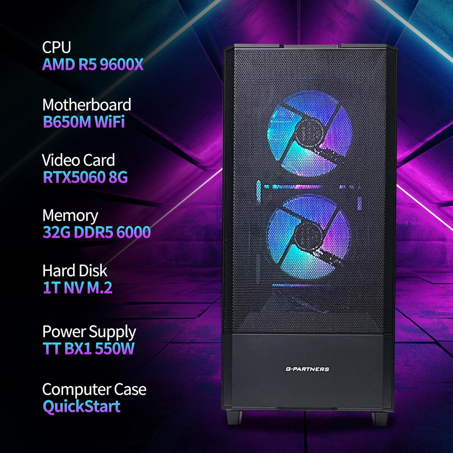 Blazing Performance: Equipped with an AMD R5 9600X CPU and GeForce RTX 5060 8GB GPU for seamless gaming, streaming, and multitasking.