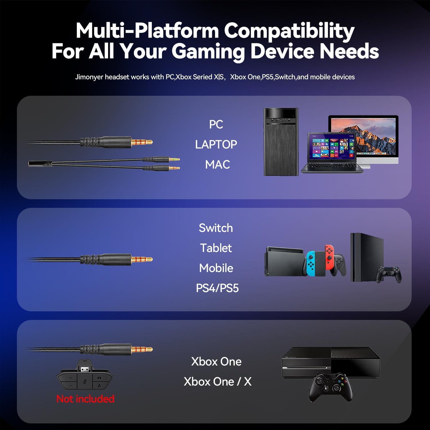 【Multi-Console Compatibility】Gaming Headphones for PC, PS4, PS5, Xbox One, Xbox series s, Xbox series x, Laptop, Mac, Switch, and so on. Any device with a 3.5mm jack. One gaming headset is enough for all devices you have.