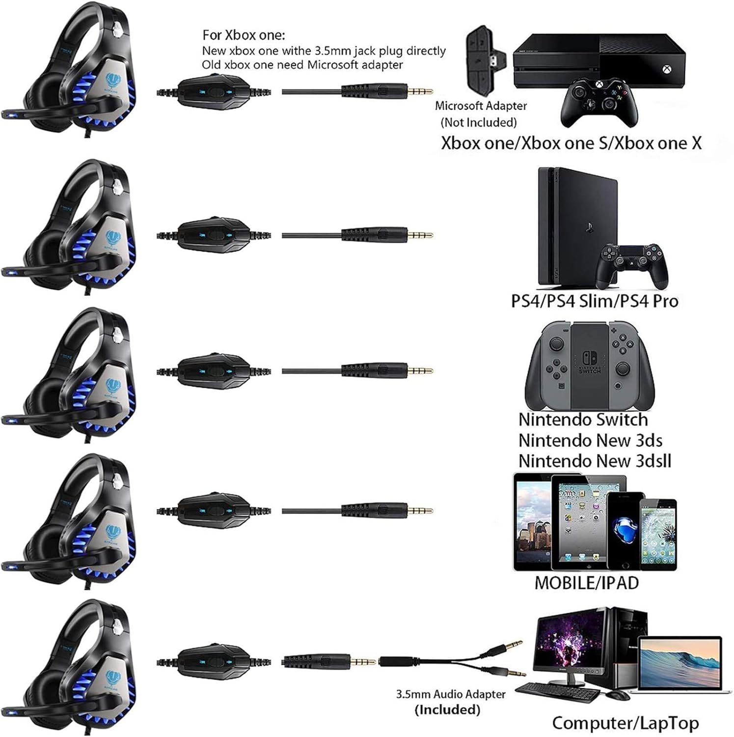 【MUTI COMPATIBLE】: GH-1 Gaming Headset supports PS4, PS5, New Xbox One, Xbox Series X/S, PC, Nintendo Switch, Laptop, Tablet, iPad, Computer, Mobile Phone, PSP and other devices with 3.5mm jack. Please note you need an extra Microsoft Adapter (Not Included) when connect with an old version Xbox One controller.
