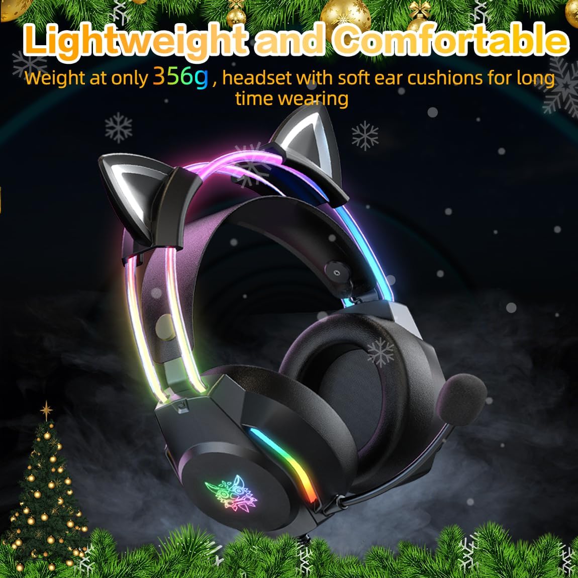 【Cute Appearance】The cat ears are removable, you can decide whether to wear them or not. Come in black color appearance with RGB lights on the ear shells, the gaming headset is great for kids, young girls, wife, female friend