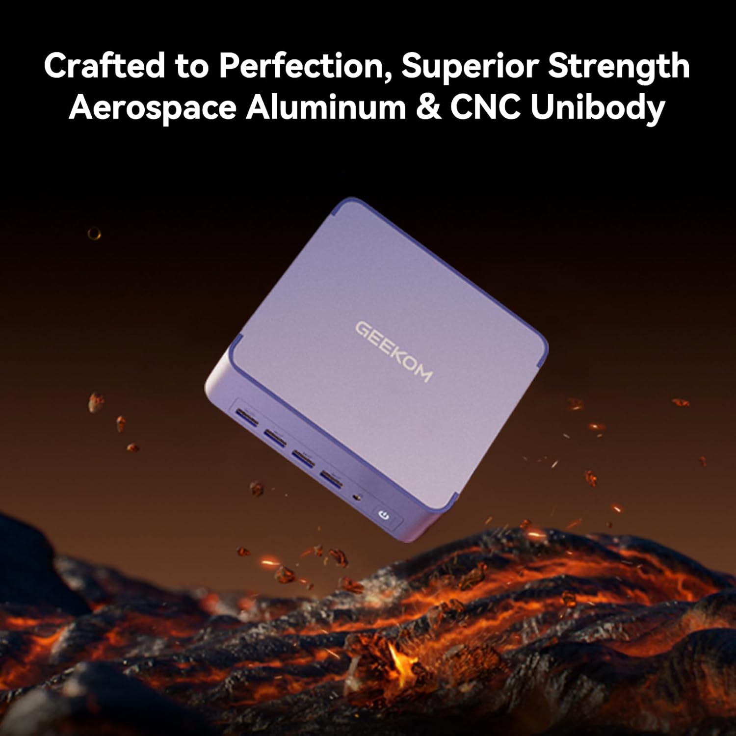 ➋ [𝗣𝗿𝗲𝗰𝗶𝘀𝗶𝗼𝗻-𝗖𝗿𝗮𝗳𝘁𝗲𝗱 𝗔𝗹𝘂𝗺𝗶𝗻𝘂𝗺 𝗙𝗿𝗮𝗺𝗲] Crafted from aircraft-grade aluminum alloy, the GEEKOM AX8 Max amd mini pc delivers robust strength, lightweight design, and exceptional heat dissipation. Precision CNC machining ensures a premium texture with flawless attention to detail