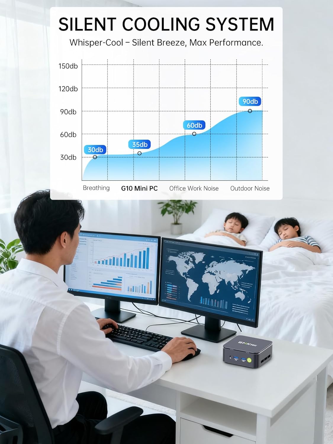 UNLEASH RAW PERFORMANCE MODE 25W – Dominate demanding tasks with the AMD Ryzen 5 3500U processor. When switched to Performance Mode in the BIOS (press “Esc” key repeatedly during boot, save then exit), this mini PC delivers superior multi-core processing power, significantly outperforming Intel N-series chips in CPU-intensive applications, multitasking, and creative workloads.
