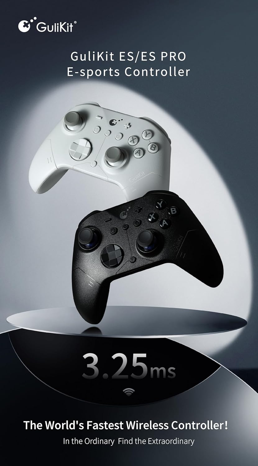 GuliKit ES Fastest Wireless Controller – Hall Anti-Drift&Anti-Snapback Joysticks, Lowest Wireless Latency 3.25ms, Compatible with PC/Switch/Android/Switch 2 Wake-up,30h Battery, Gyro&Turbo for FPS