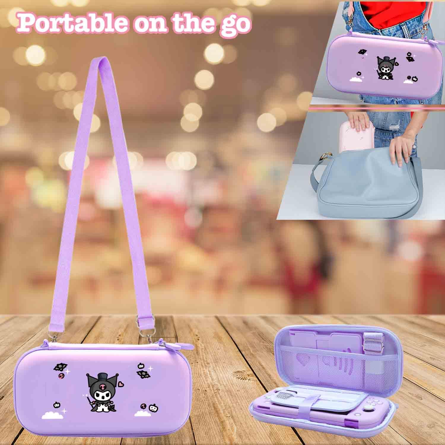 SOLID AND STURDY CARRYING CASE – Designed to make your Switch 2 console even more portable and travel friendly, the purple cute carry case for Nintendo Switch 2 is made from a hard PU shell with Cartoon style to offer protection from water and impact. Comes with shoulder strap and ergonomic wrist strap makes your NS 2 ultraportable, and the case has abundant storage space for Nintendo Switch 2 accessories such as console, joy-cons, accessories and games cartridges