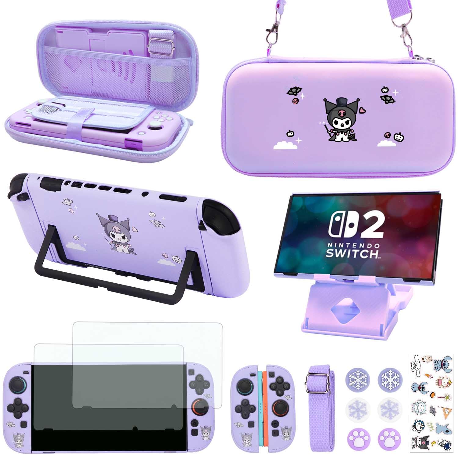 11 IN 1 ACCESSORIES BUNDLE FOR NINTENDO SWITCH 2 2025 – The Cute Accessories Kit for Nintendo Switch 2 2025 includes 1x Carrying Case, 1x Dockable Cover Case, 2x Tempered Glass Screen Protector, 1x Adjustable kawaii Stand, 6 Thumb Grips, 1x Cartoon Keychain. If you’re looking for a kawaii cute purple Switch 2 accessories kit for you or your kids as a birthday or Christmas gift – this is the perfect gift and saves your time on searching varieties accessories