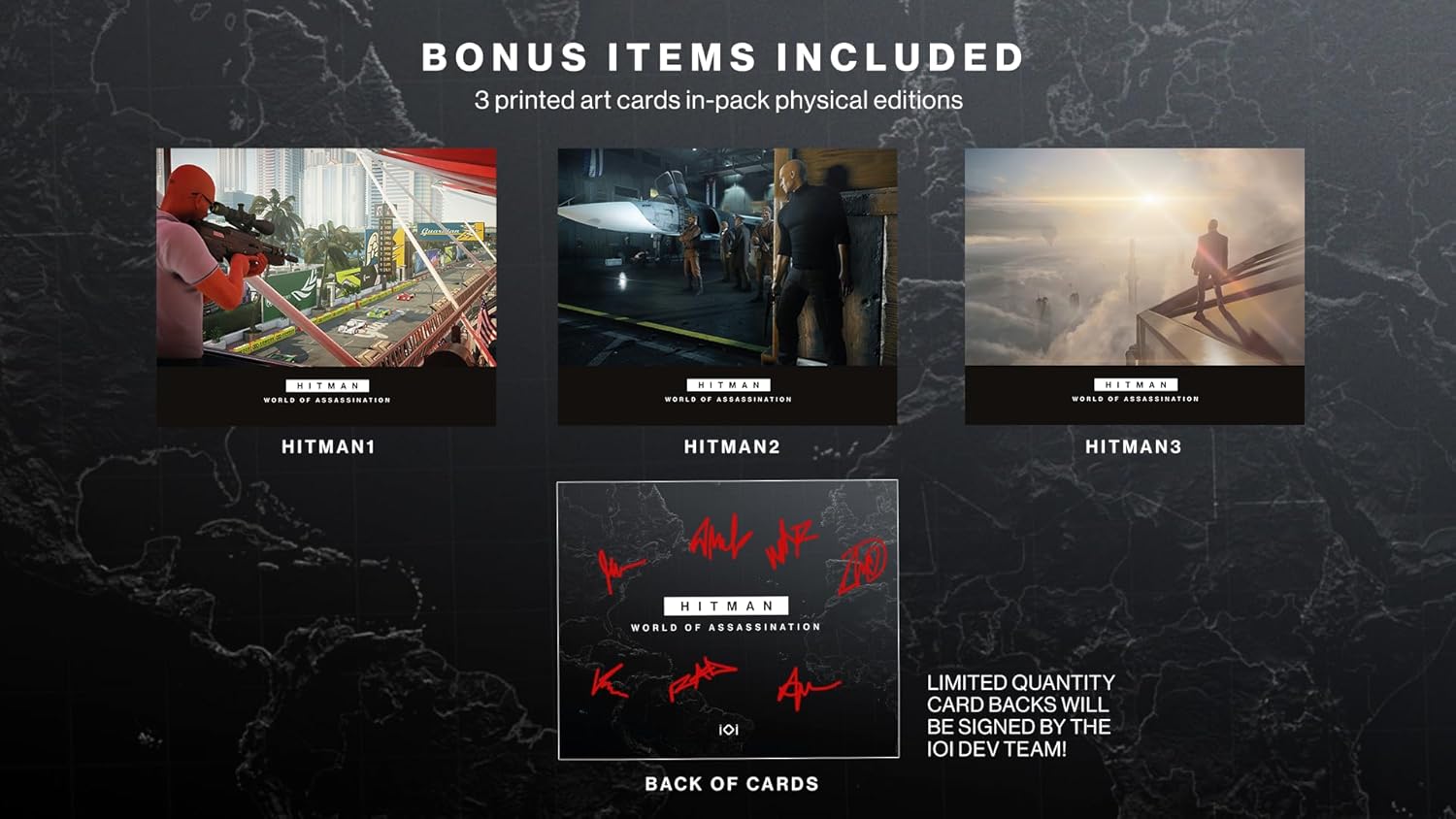 Includes 3 bonus collectible Art Cards inside the box so you can relive key moments from Hitman 1, 2 and 3.