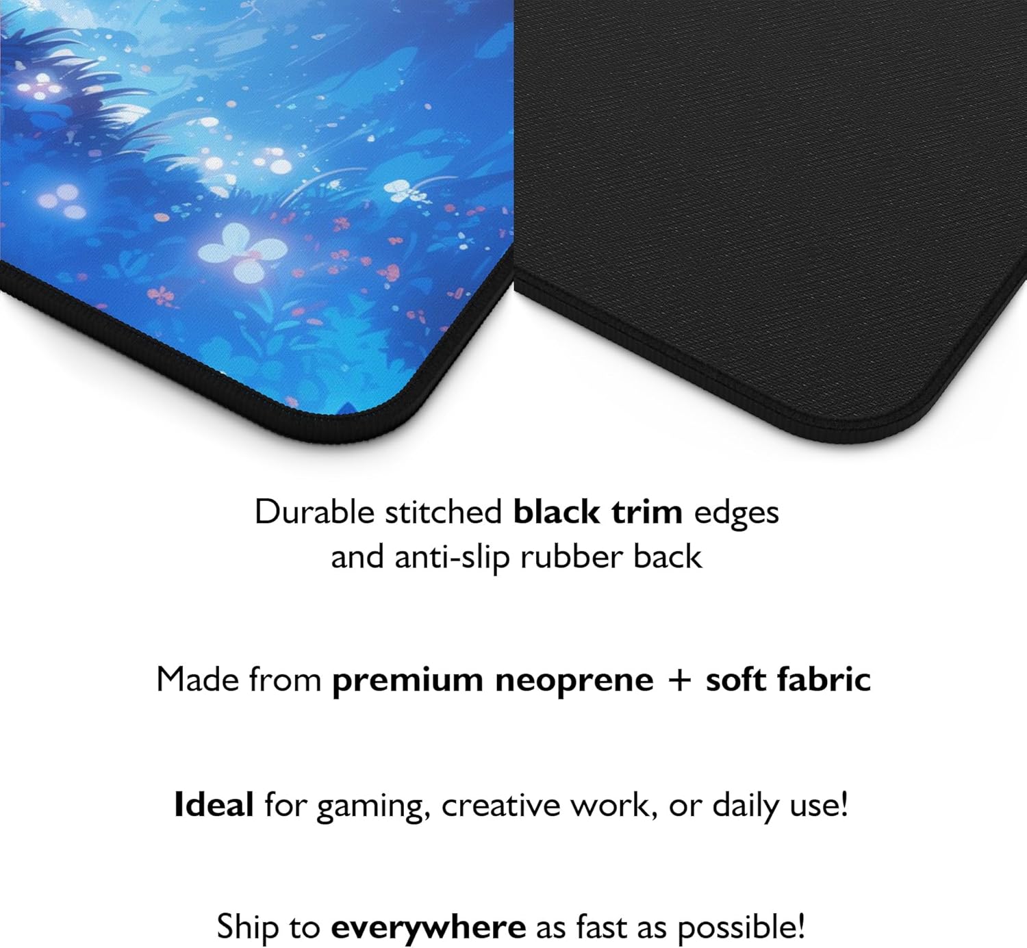 Add a touch of whimsy and charm to your workspace with my adorable mouse pads, featuring delightful designs inspired by the enchanting cottagecore and goblincore aesthetics. Each pad is made from high-quality neoprene, providing a smooth surface for precise mouse control and a non-slip rubber backing to keep it securely in place. These large mouse pads offer ample space for both your keyboard and mouse, perfect for gamers, designers, and office workers alike. Using advanced sublimation printing technology, the vibrant colors and detailed graphics will stay fresh and vivid, even with daily use. These mouse pads provide plenty of space for your keyboard and mouse, offering both comfort and functionality for any workspace. To clean, simply use a soft sponge with warm, soapy water. Gently wipe in the direction of the fibers to ensure the longevity of the design and material. Avoid harsh scrubbing or soaking for the best results. Graphic made with Artifial Intelligence and edited by me.