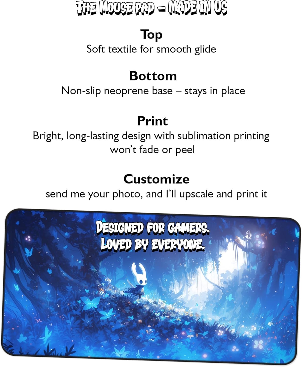 Hollow Knight inspired fanart Gaming Mouse Pad, Home office desk mat, Cozy gamer Mouse Pad – Large 31×15.5 Inch, Non-Slip Neoprene, Indie game & Hollow Knight Aesthetic office desk mat (Small)