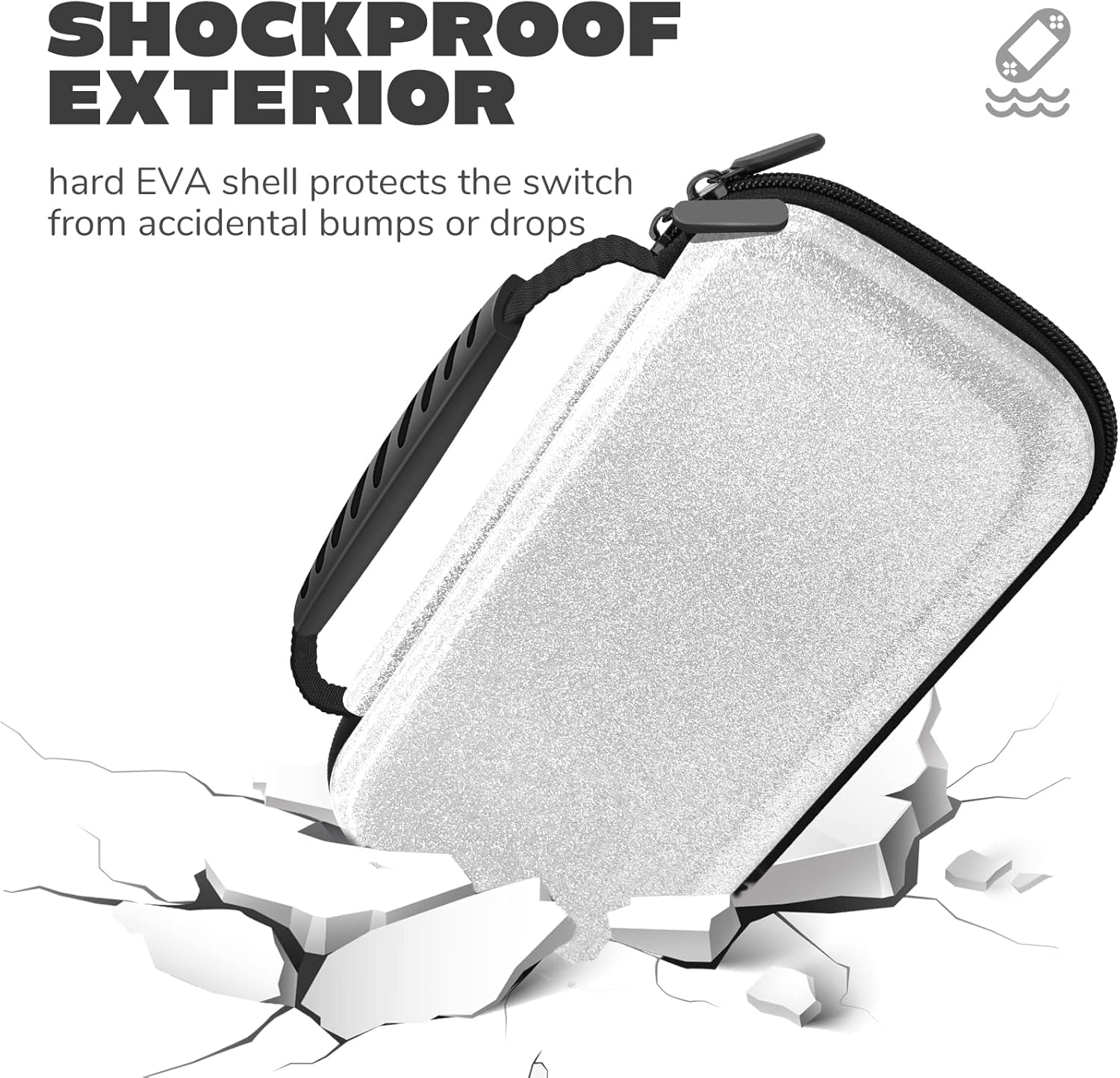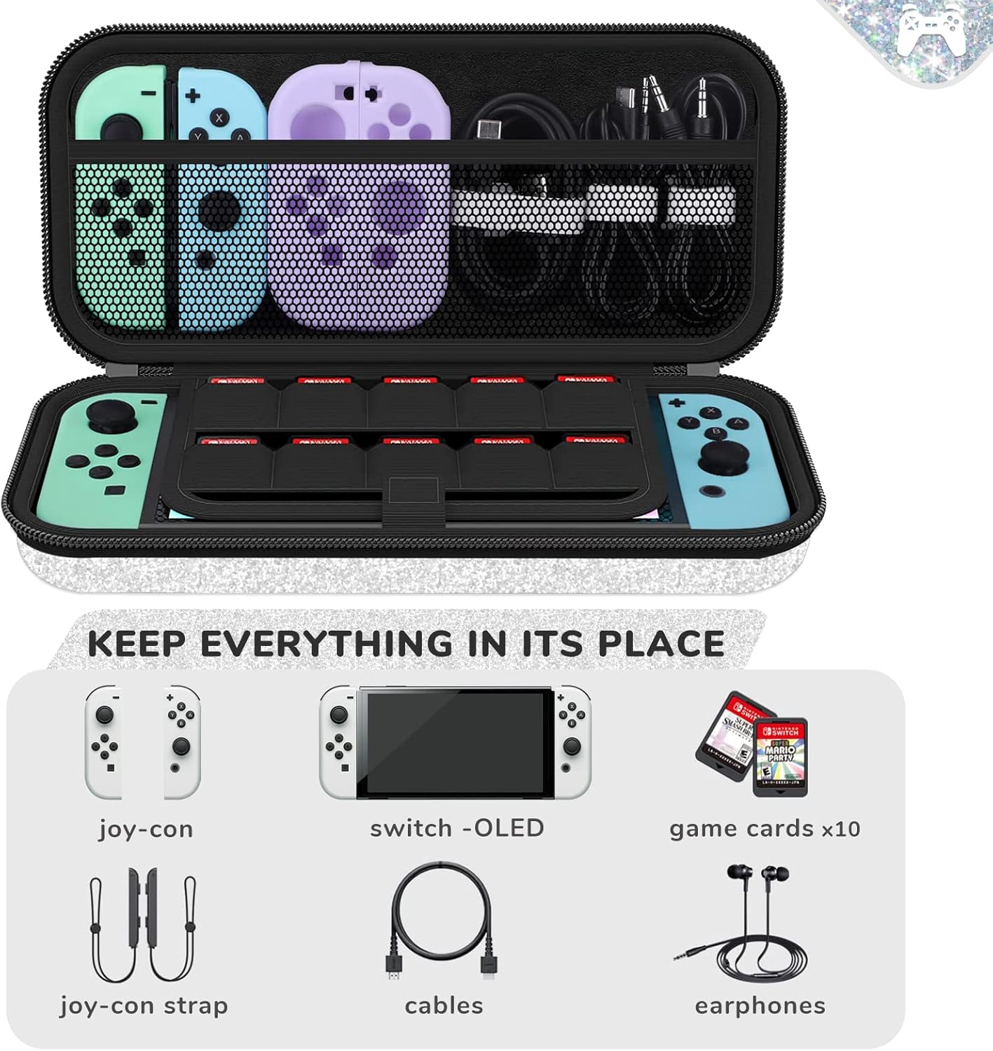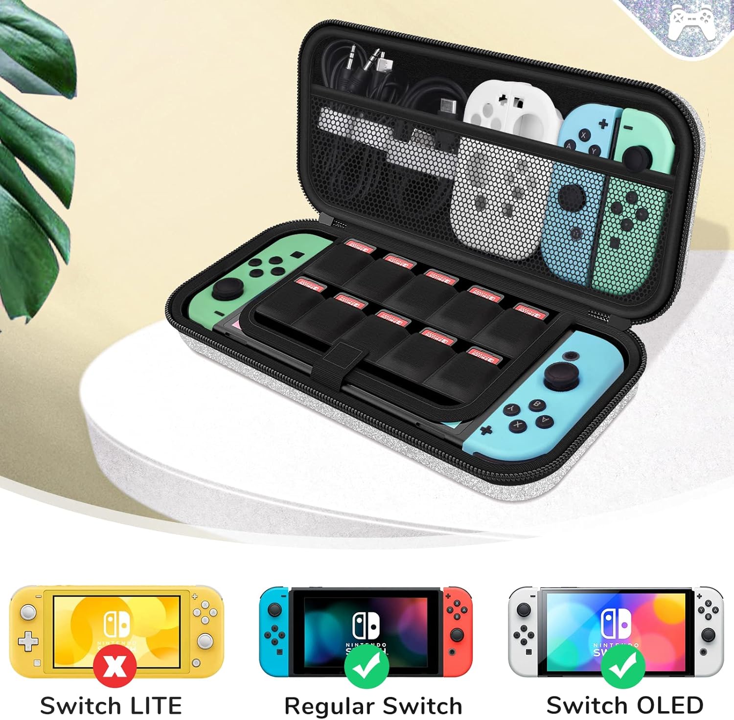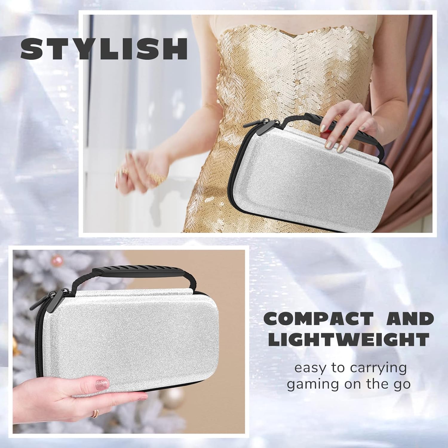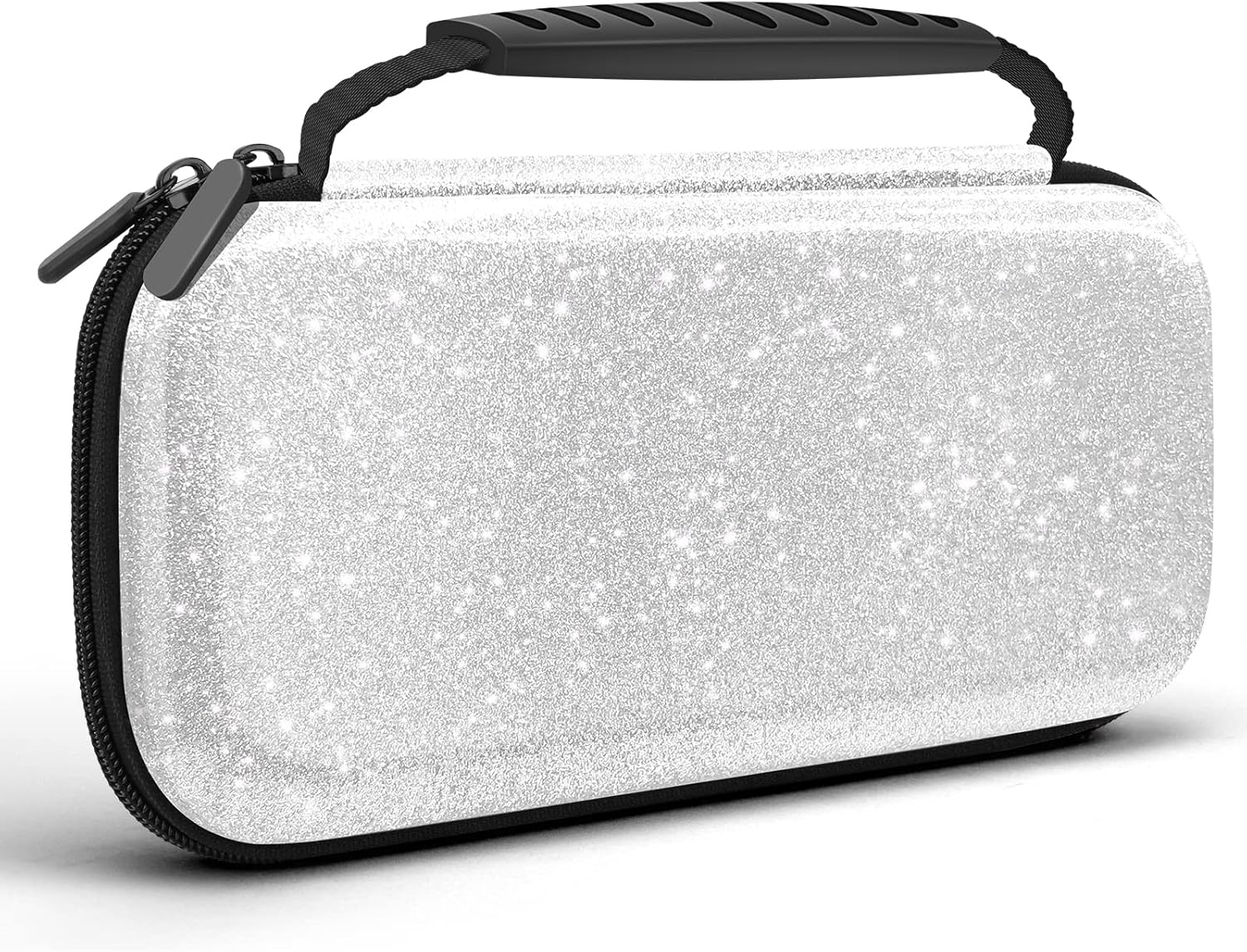 Glitter Carrying Case for Nintendo Switch/Switch OLED-Designed for Nintendo Switch and Switch OLED. The rubberized handle and lightweight design make it more portable and travel-friendly. Perfect for you to carry a Nintendo Switch console and accessories everywhere.