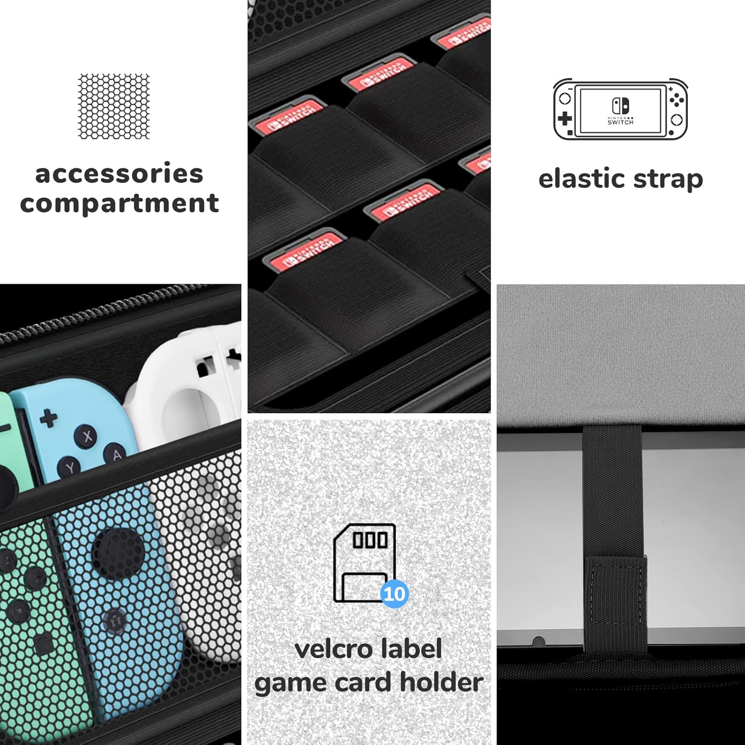 Protection Case for NS/NS OLED Version–Hard EVA shell protects the Nintendo Switch from accidental bumps, drops and scratches. The soft Interior protects the Switch from everyday wear and tear. The Switch carrying case for girls is compatible with OLED Model (2021) 7.0 Inch / Nintendo Switch (2017) 6.2 Inch.