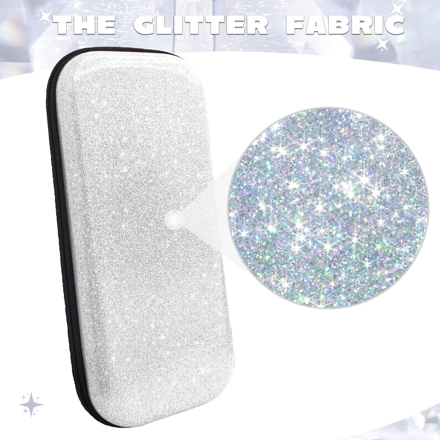 homicozy Glitter Carrying Case for Nintendo Switch and Switch OLED Console,Silver Hard Travel Case Shell Pouch for Nintendo Switch Console & Accessories,Protective Carry Case Compatible with Nintendo for Girls