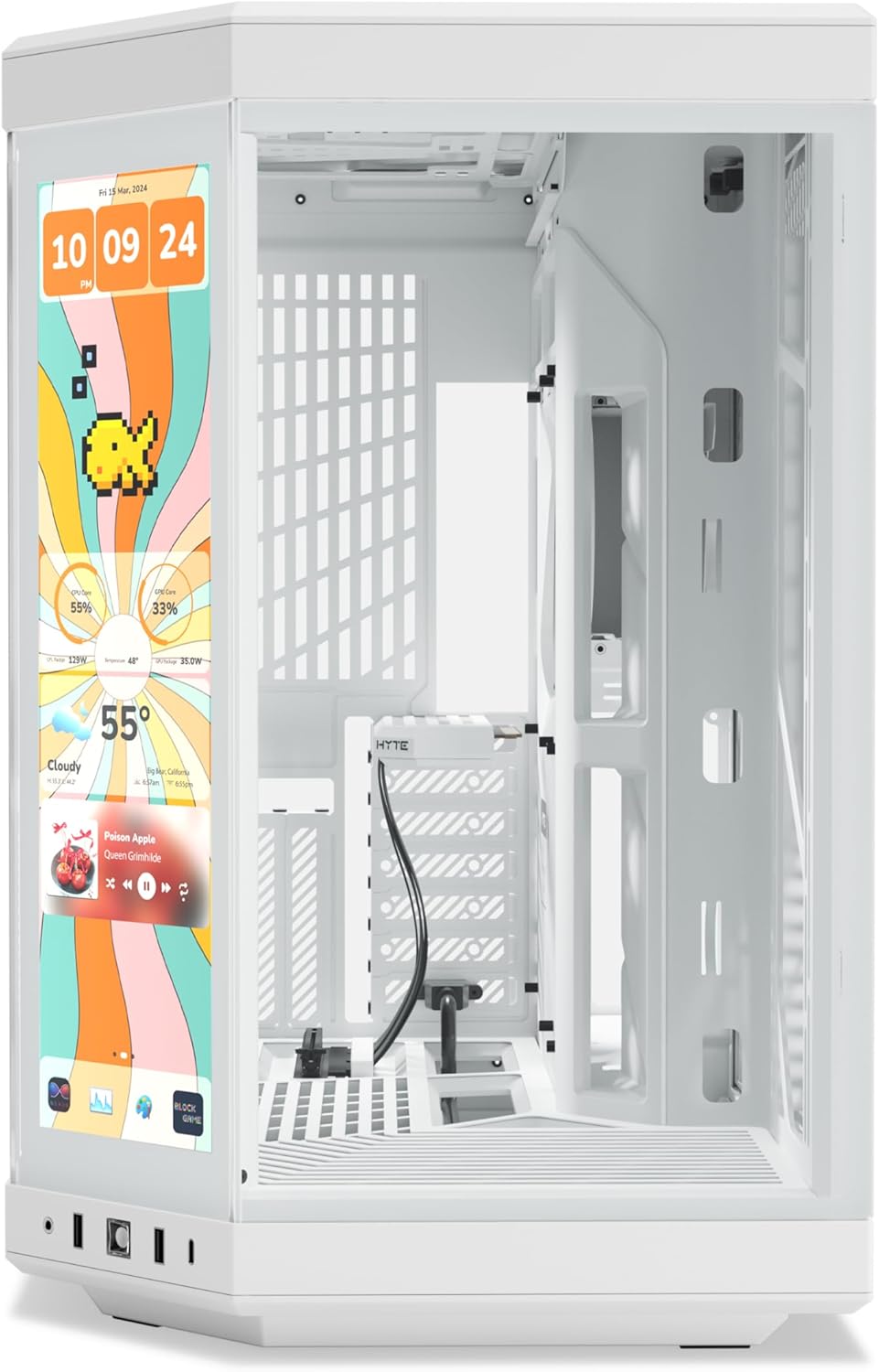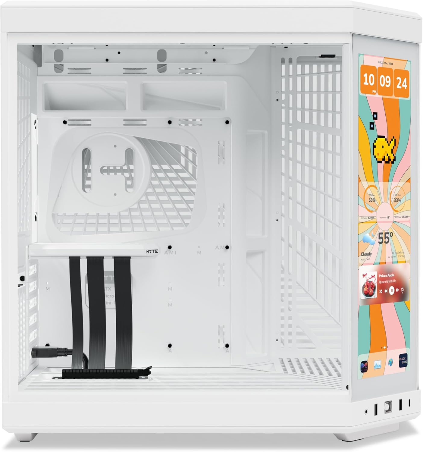 Hyte Y70 Touch Infinite Dual Chamber ATX Mid Tower Modern Aesthetic Case with Integrated 2.5K LCD Touchscreen – Snow White