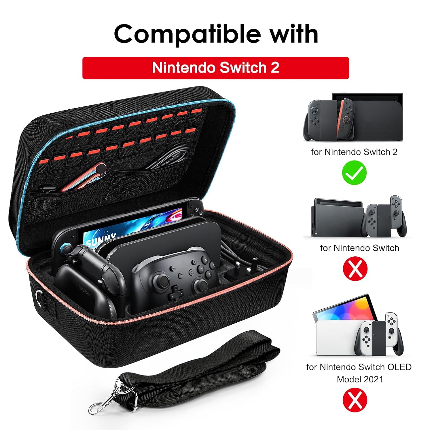 Deluxe Travel Carrying Case. Specially designed to make your Console system even more portable & travel friendly. Comfortable handle strap is ideal for carrying. Large storage is suitable to take all the Switch 2 accessories when go on a trip.