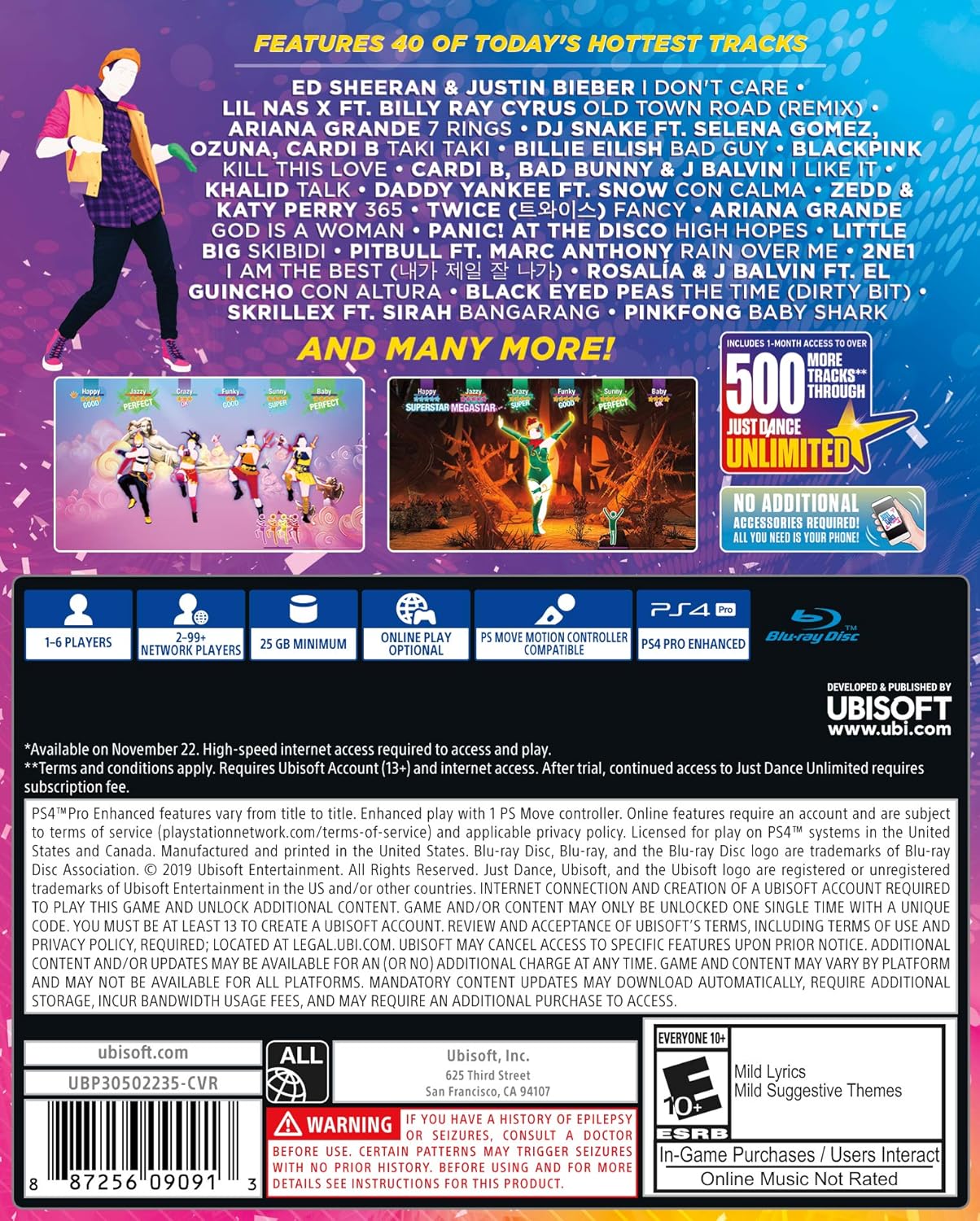 Just Dance 2020 is the ultimate dance game, with 40 hot tracks from chart-topping hits like “bad guy” by Billie Eilish, “Kill This Love” by BLACKPINK, “Old Town Road (Remix)” by Lil Nas X Ft. Billy Ray Cyrus, and “7 rings” by Ariana Grande, and the new song “Into the Unknown” from Disney’s Frozen 2. Keep the party going for hours with songs for the whole family to enjoy.