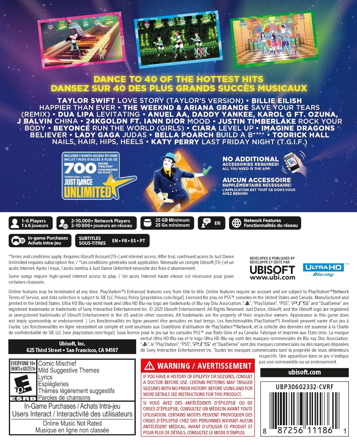 Just Dance 2022, the ultimate dance game, is back with new environments and 40 hot new tracks from chart-topping hits like “Don’t Go Yet” by Camila Cabello, “Love Story (Taylor’s Version)” by Taylor Swift, “Happier Than Ever” by Billie Eilish, and more!